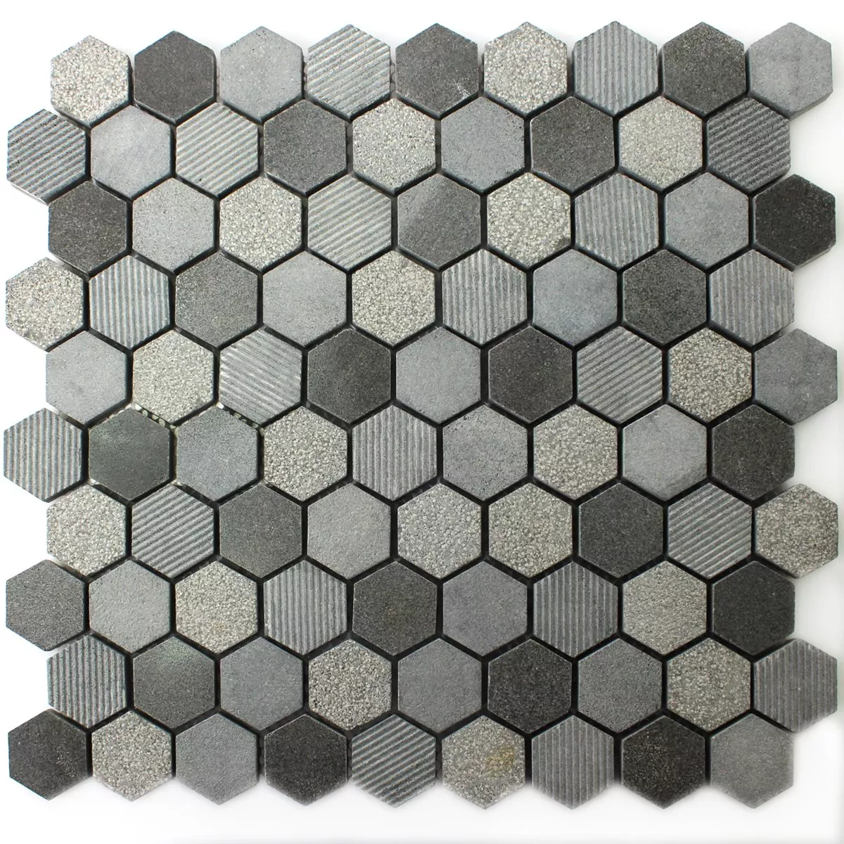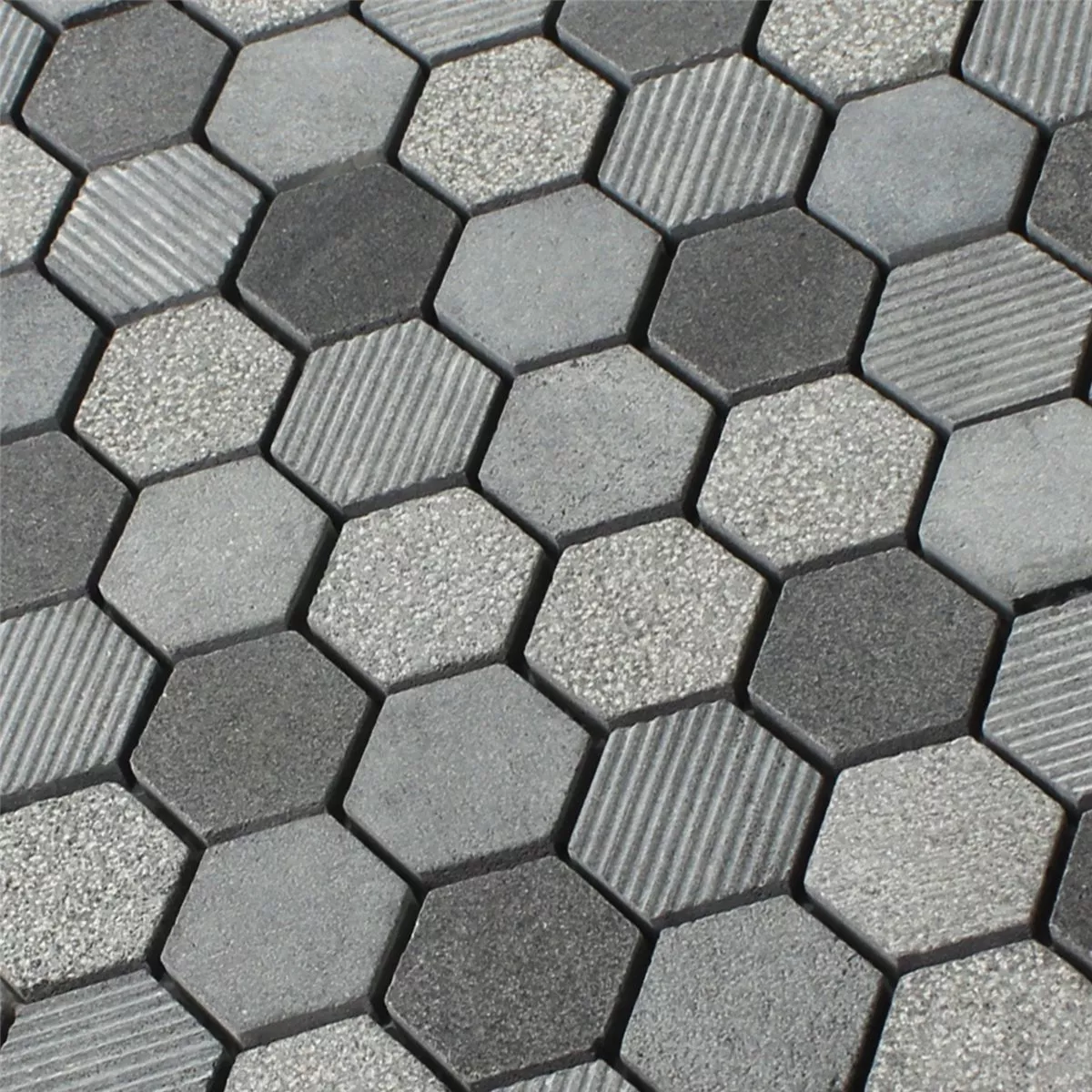 Mosaikfliesen Hexagon Naturstein Notte Anthrazit