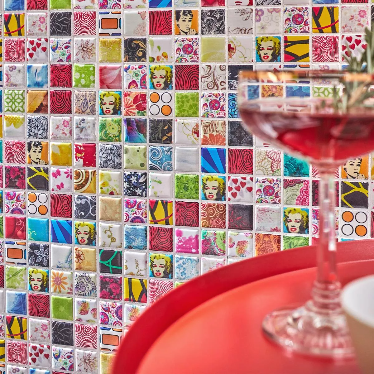 Keramikmosaik Fliesen Retro Vintage Optik Hebron Bunt