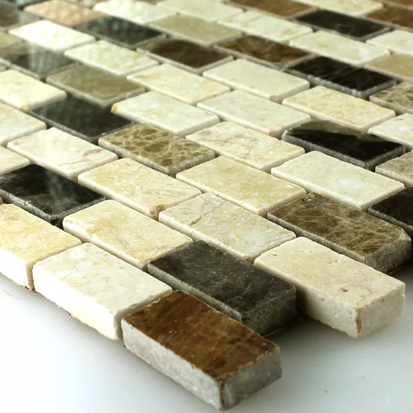 Mosaikfliesen Marmor Braun Beige Poliert 15x30x7mm