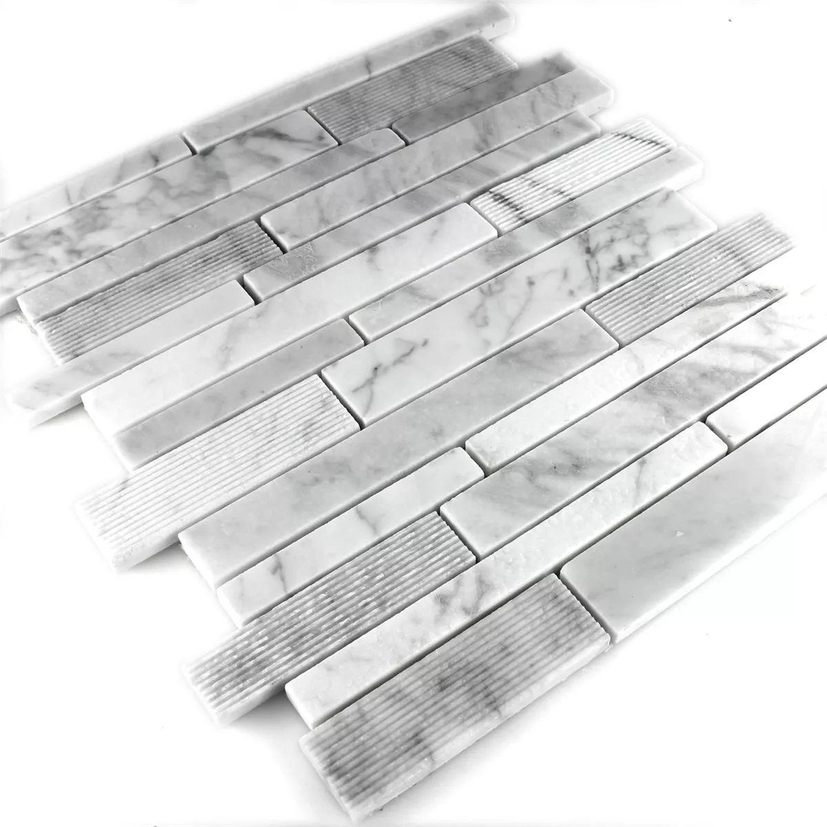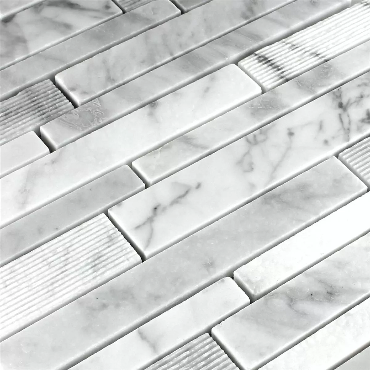 Mosaikfliesen Marmor Stäbchen Weiss