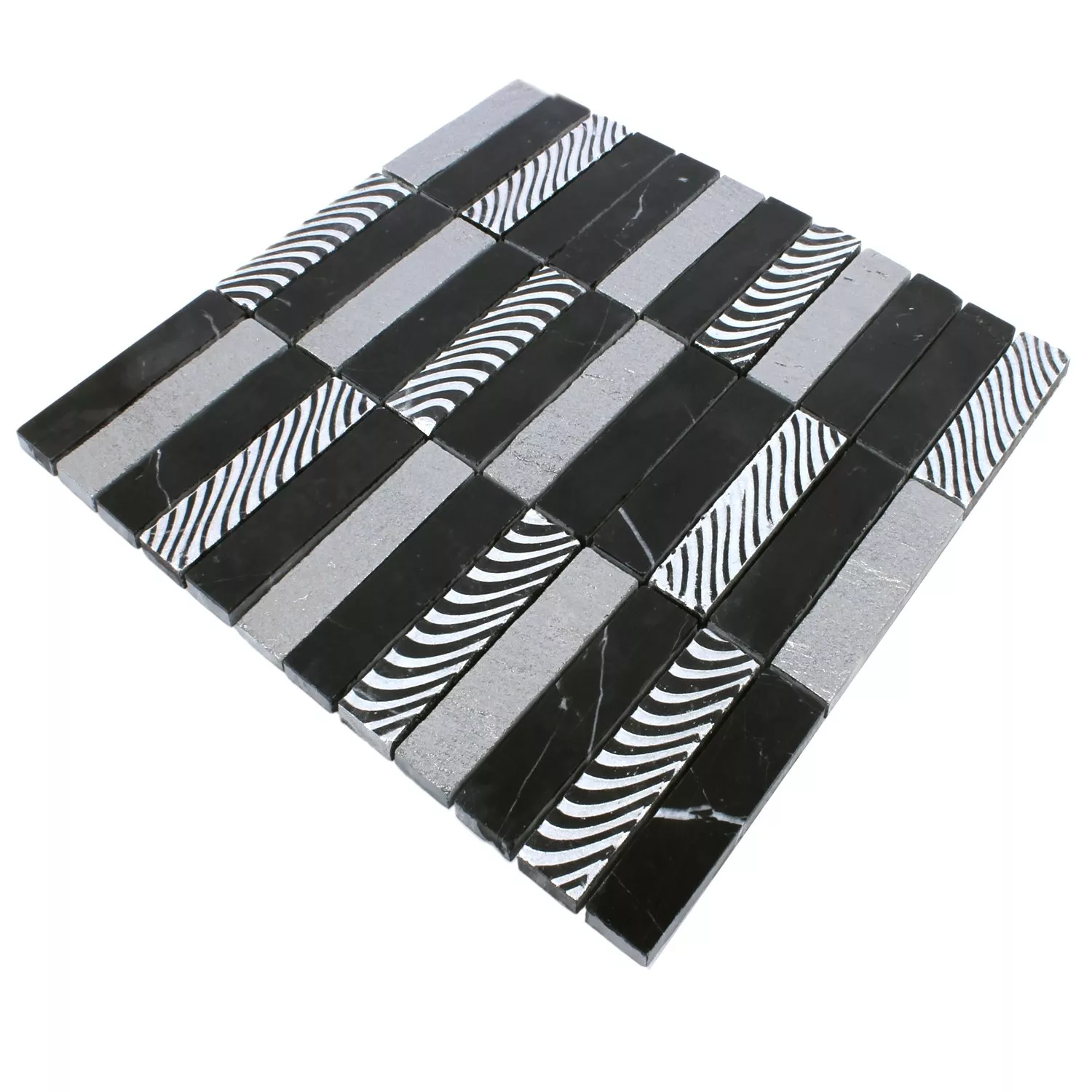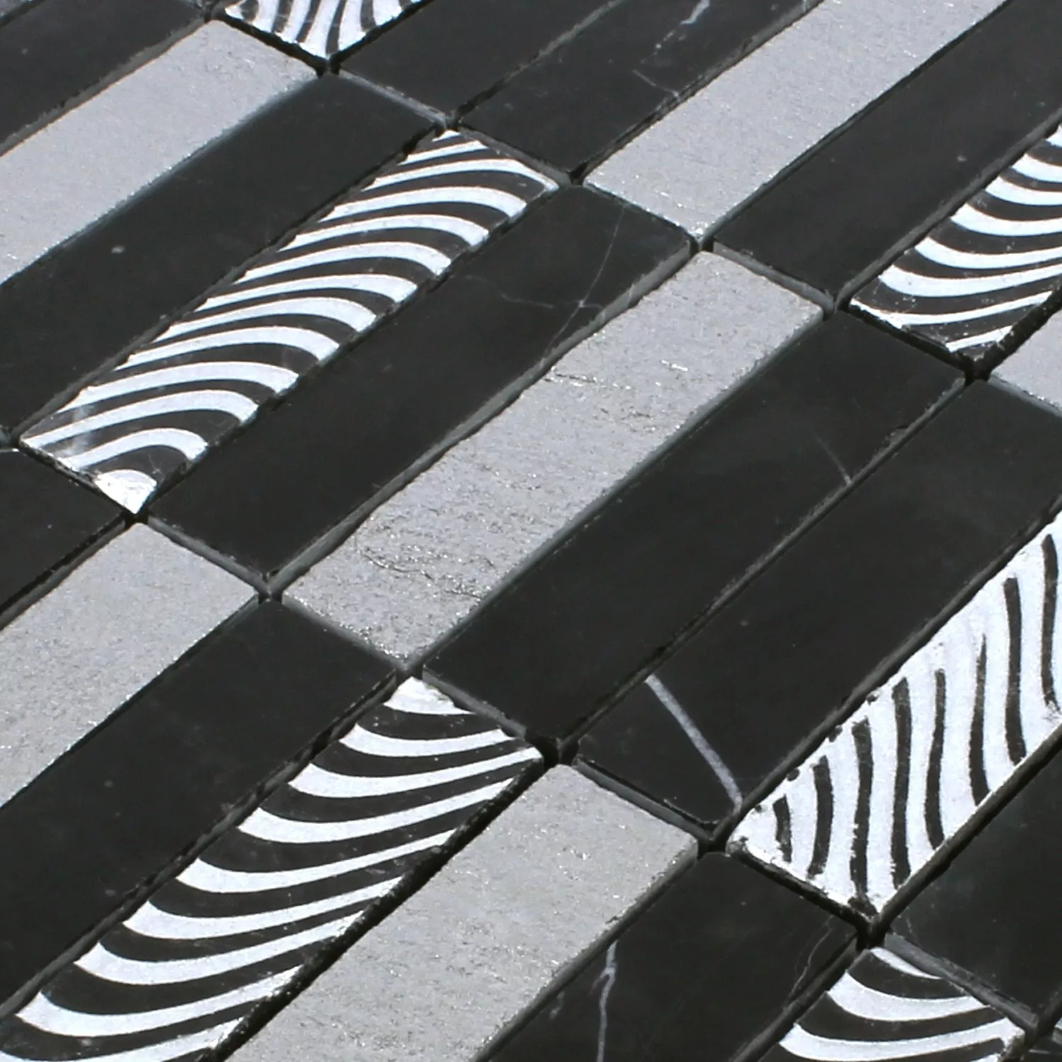 Naturstein Mosaikfliesen Carving Schwarz Grau Silber