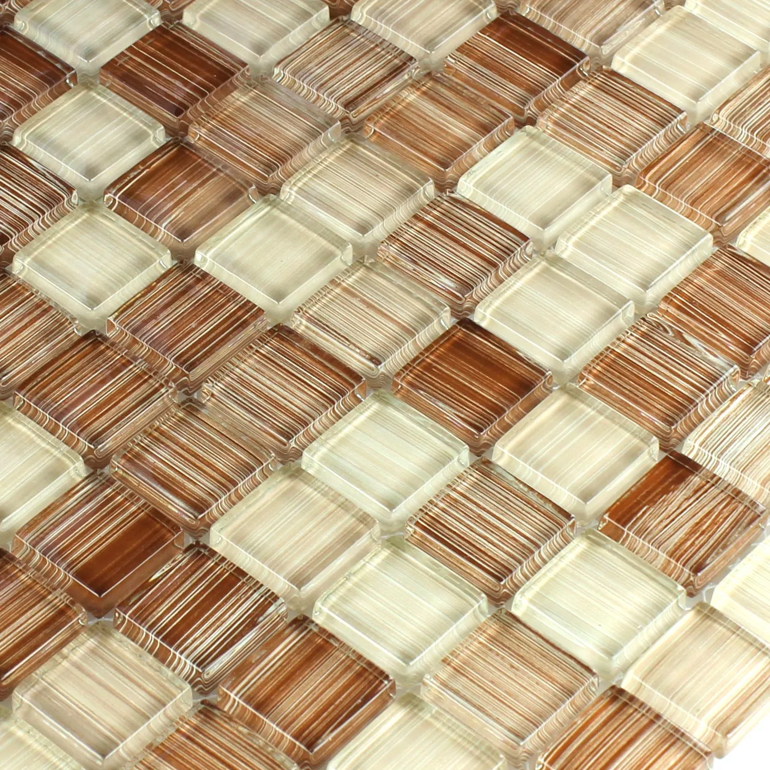 Muster Glasmosaik Fliesen Lafayette Braun Beige Gestreift 8mm
