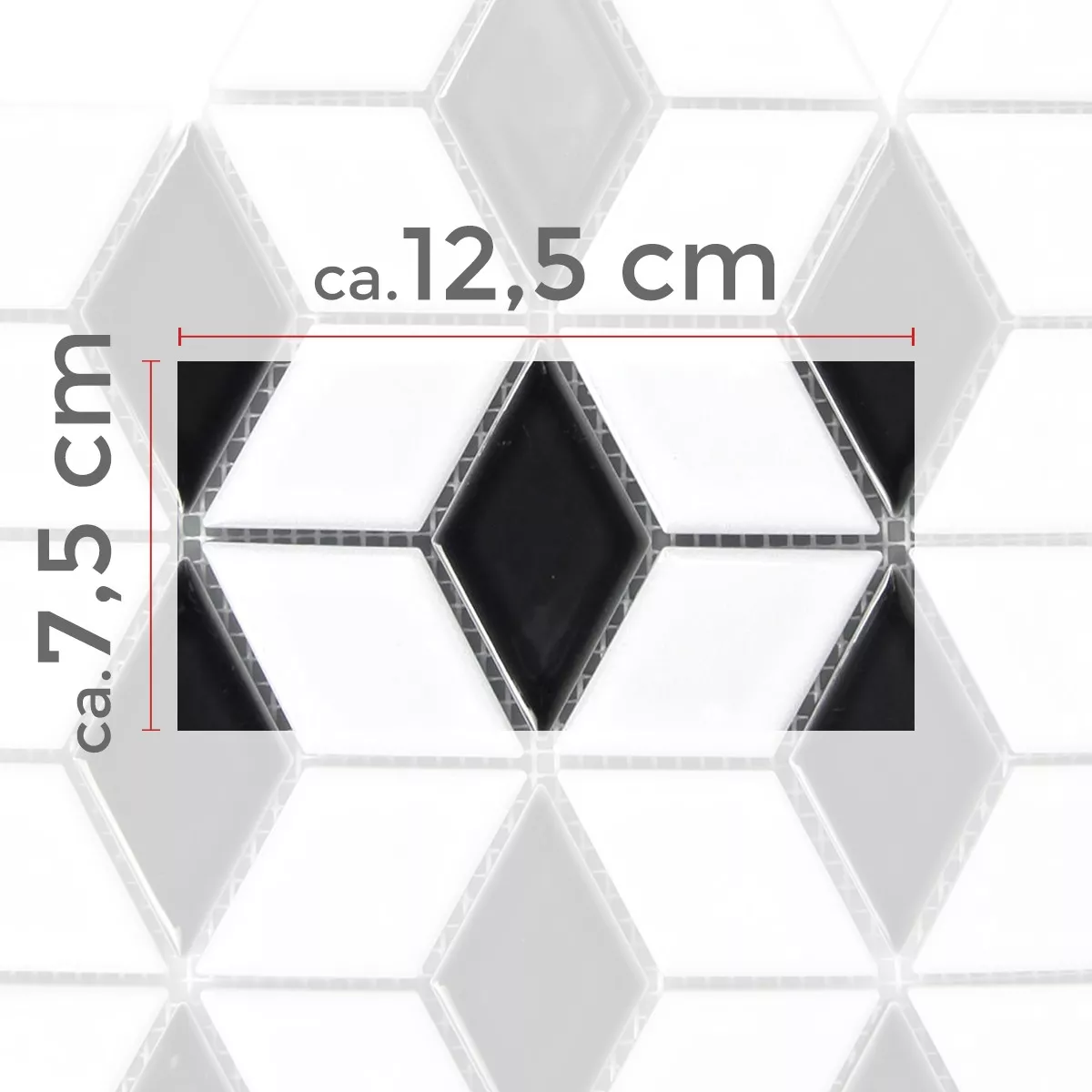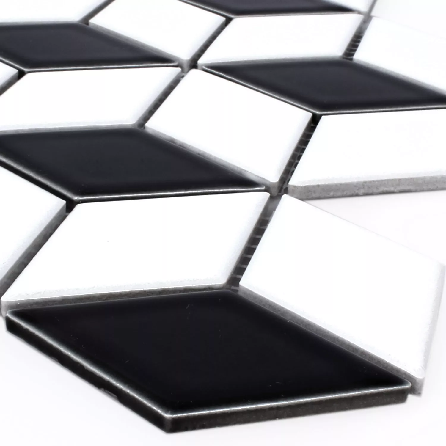 Muster Keramikmosaik Kosmos 3D Würfel Schwarz Weiß Glänzend