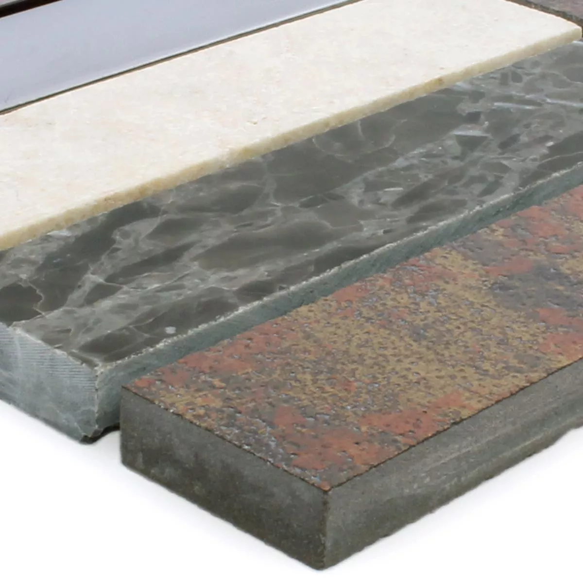 Jede Fliese und jedes Mosaik haben aufgrund individueller Materialeigenschaften und Anwendungsbedingungen unterschiedliche Anforderungen an das Zuschneiden, Verlegen und Verarbeiten. Fragen Sie einen örtlichen Experten für das korrekte und sichere Verlegen Ihrer Mosaike oder Fliesen. Wir haften nicht für unsachgemäßen Gebrauch und fehlerhafte Verarbeitung von Baumaterialien.
