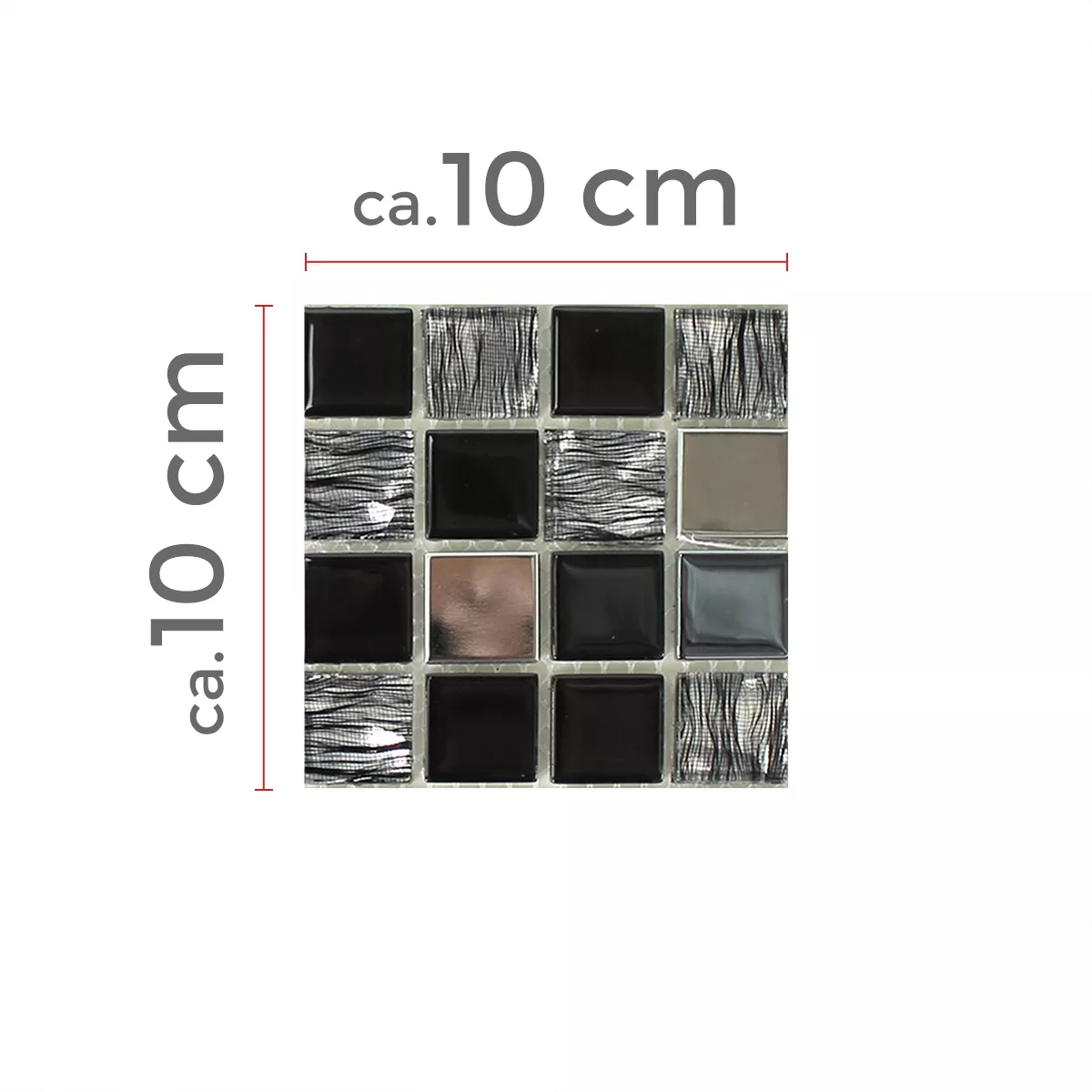 Muster von Glas Edelstahl Mosaik Amasya Selbstklebend Schwarz Silber