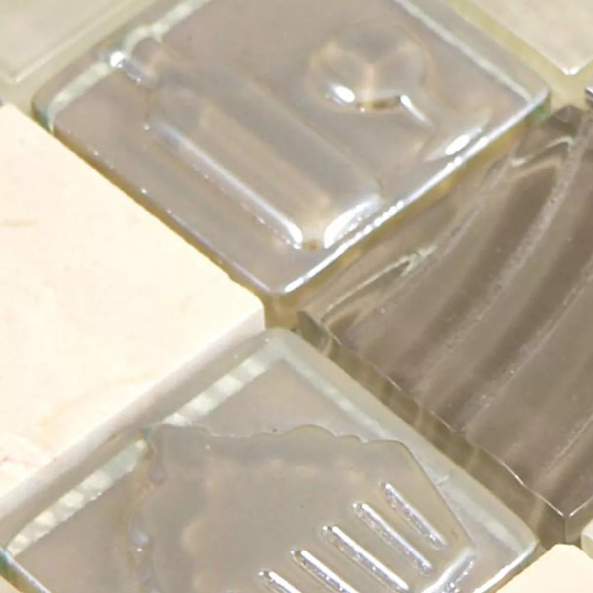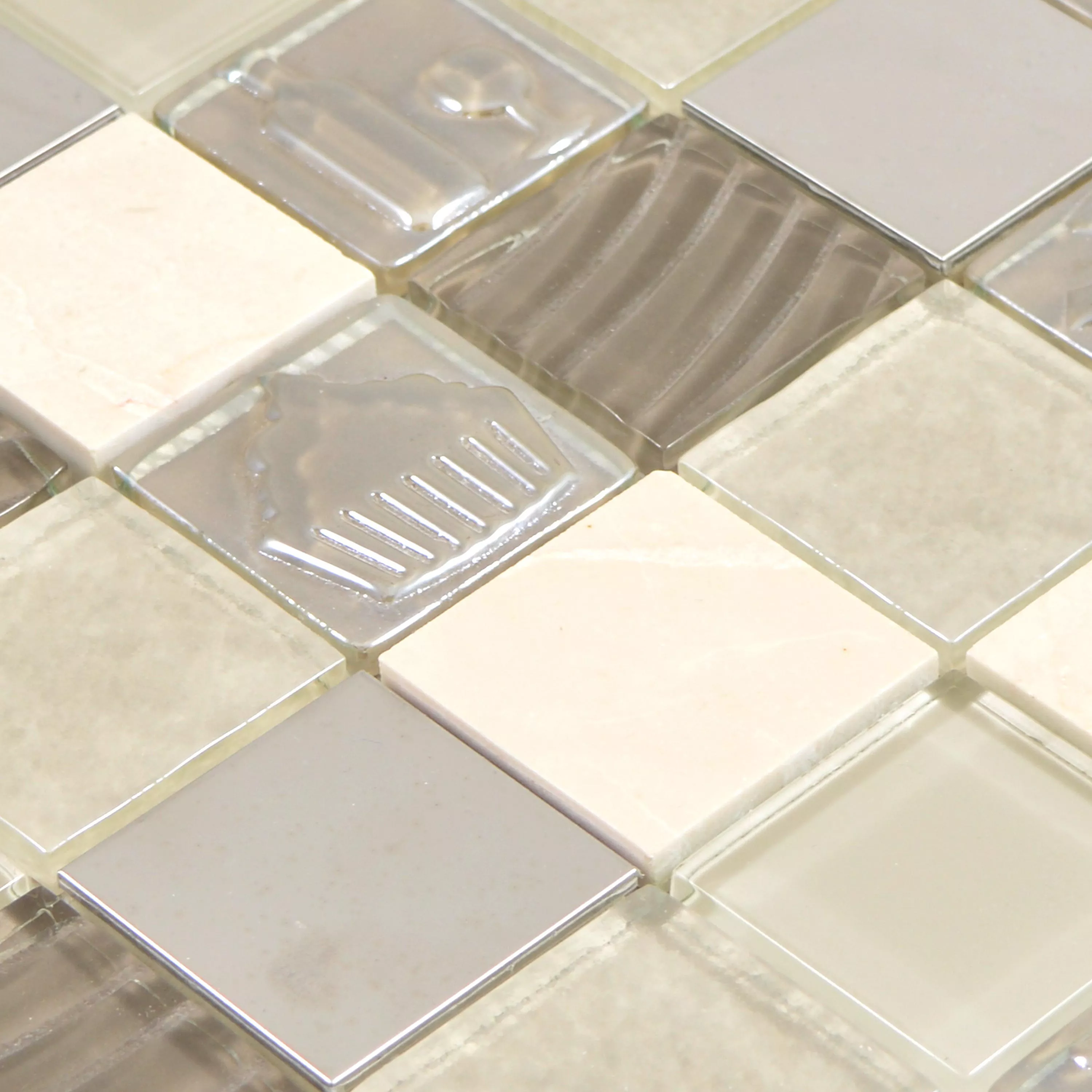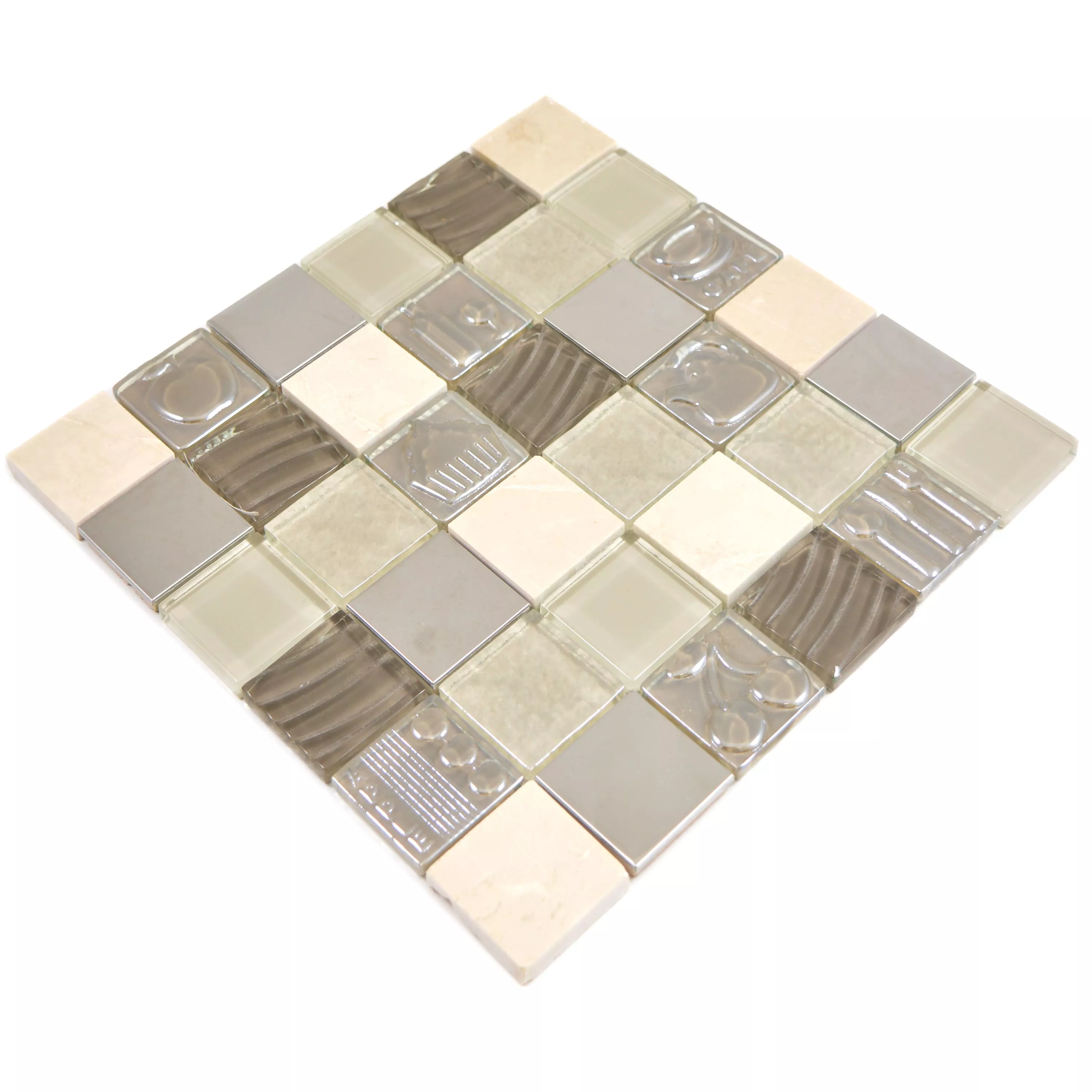 Muster von Glas Edelstahl Naturstein Mosaikfliesen Emporia Braun Beige Silber