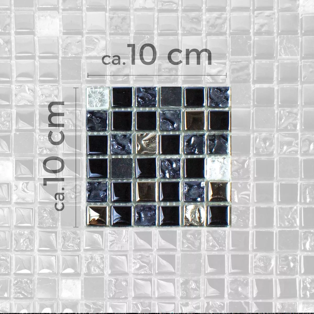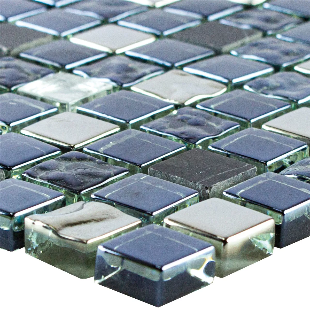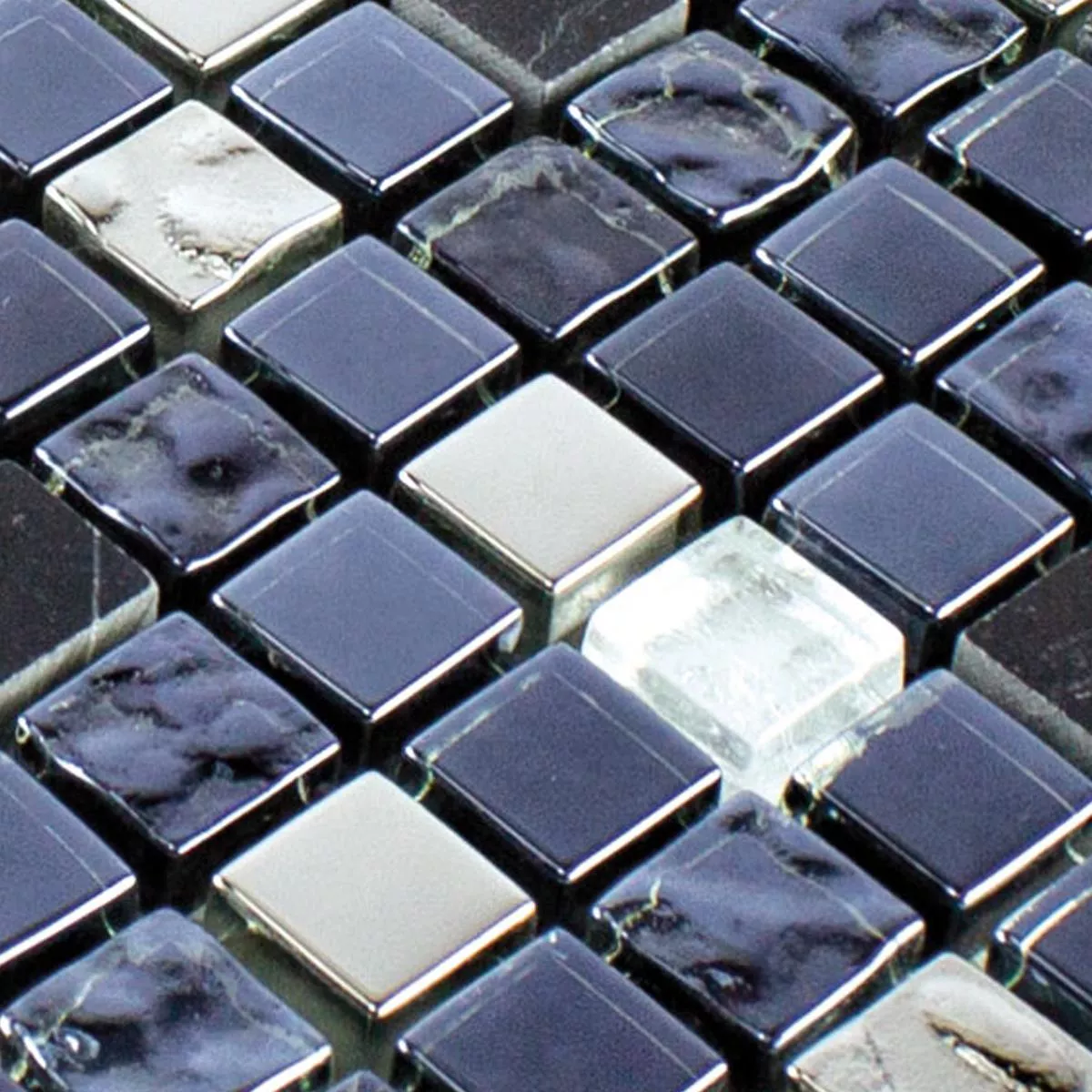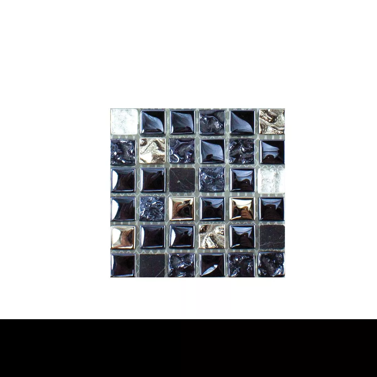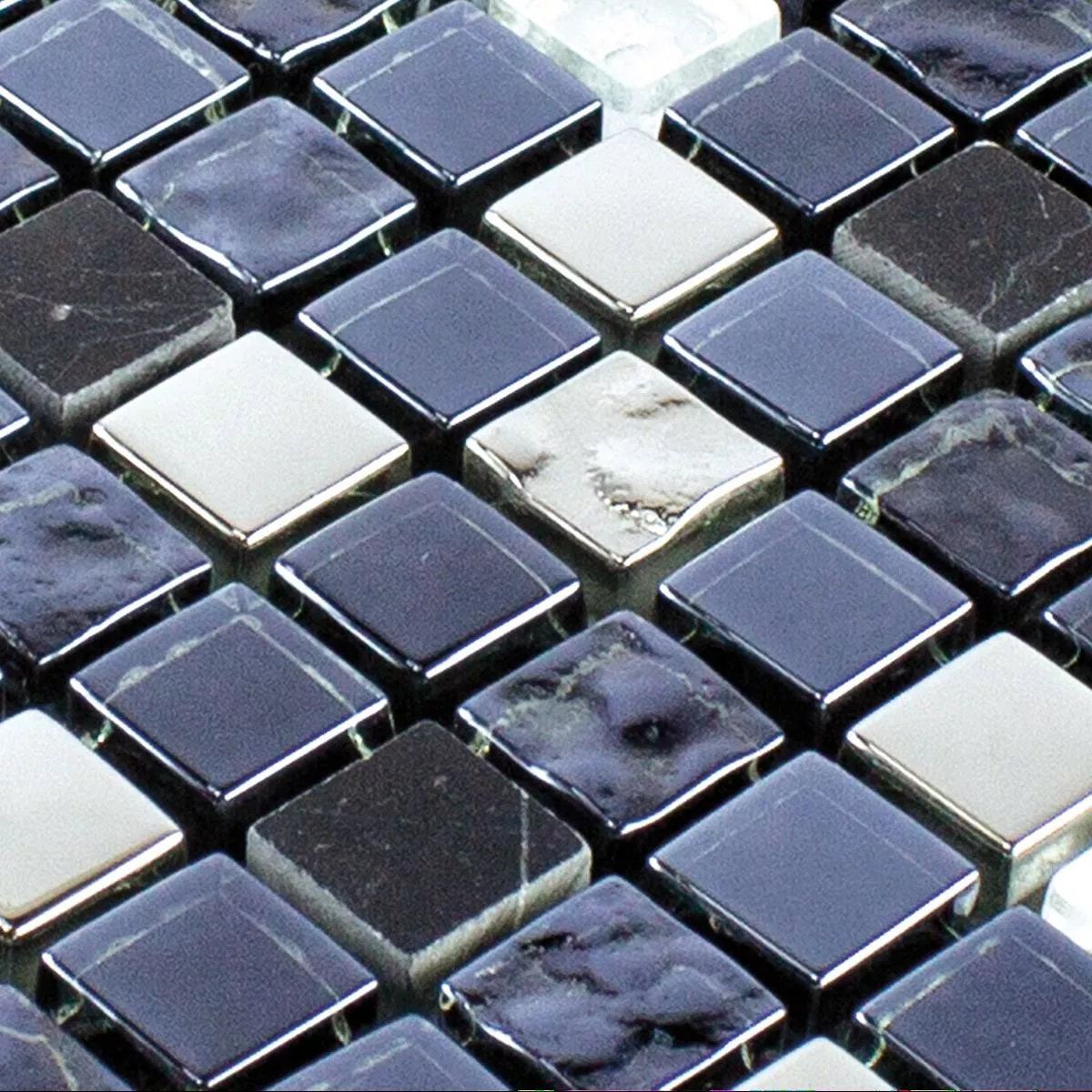 Muster von Glas Naturstein Mosaikfliese Cooktown Schwarz Silber