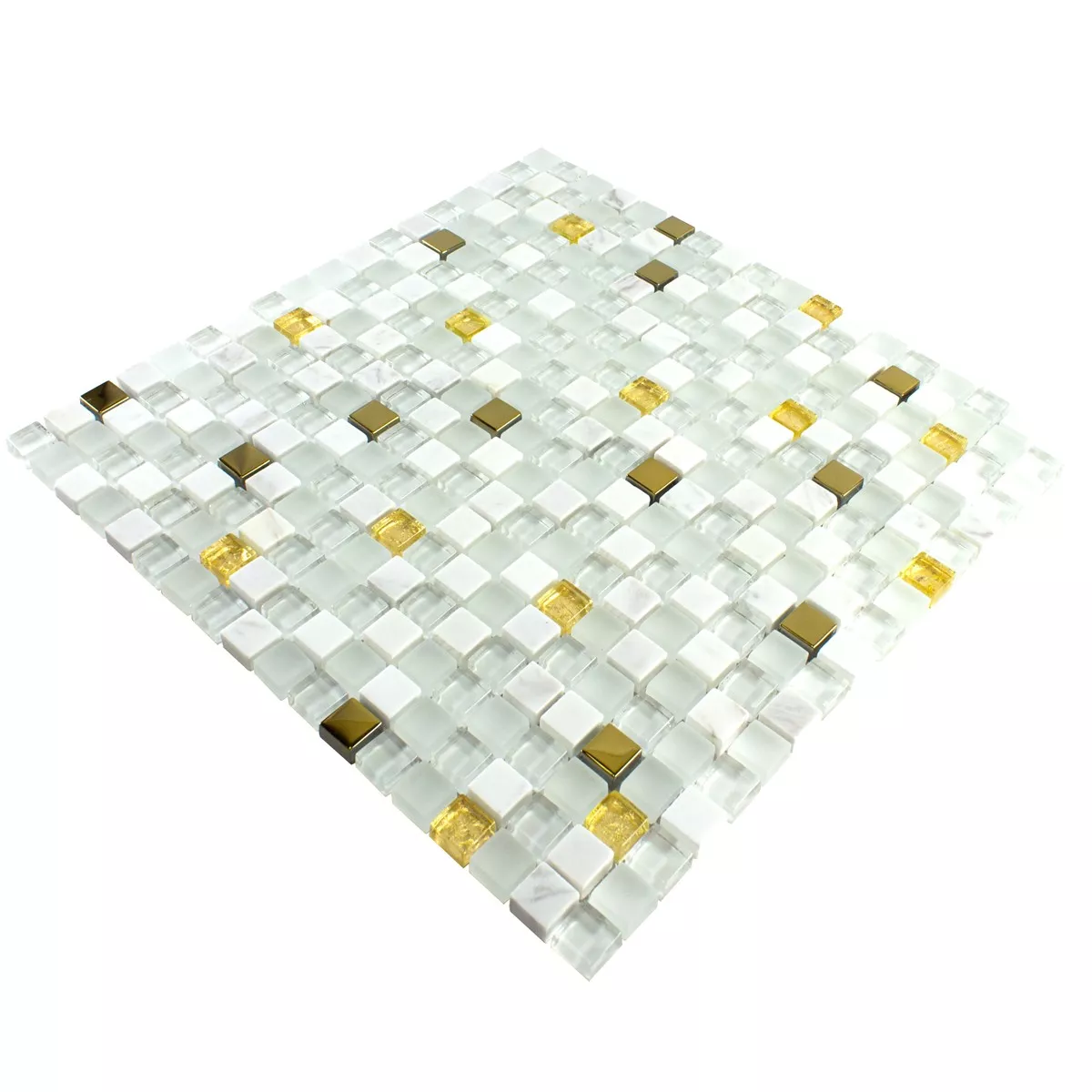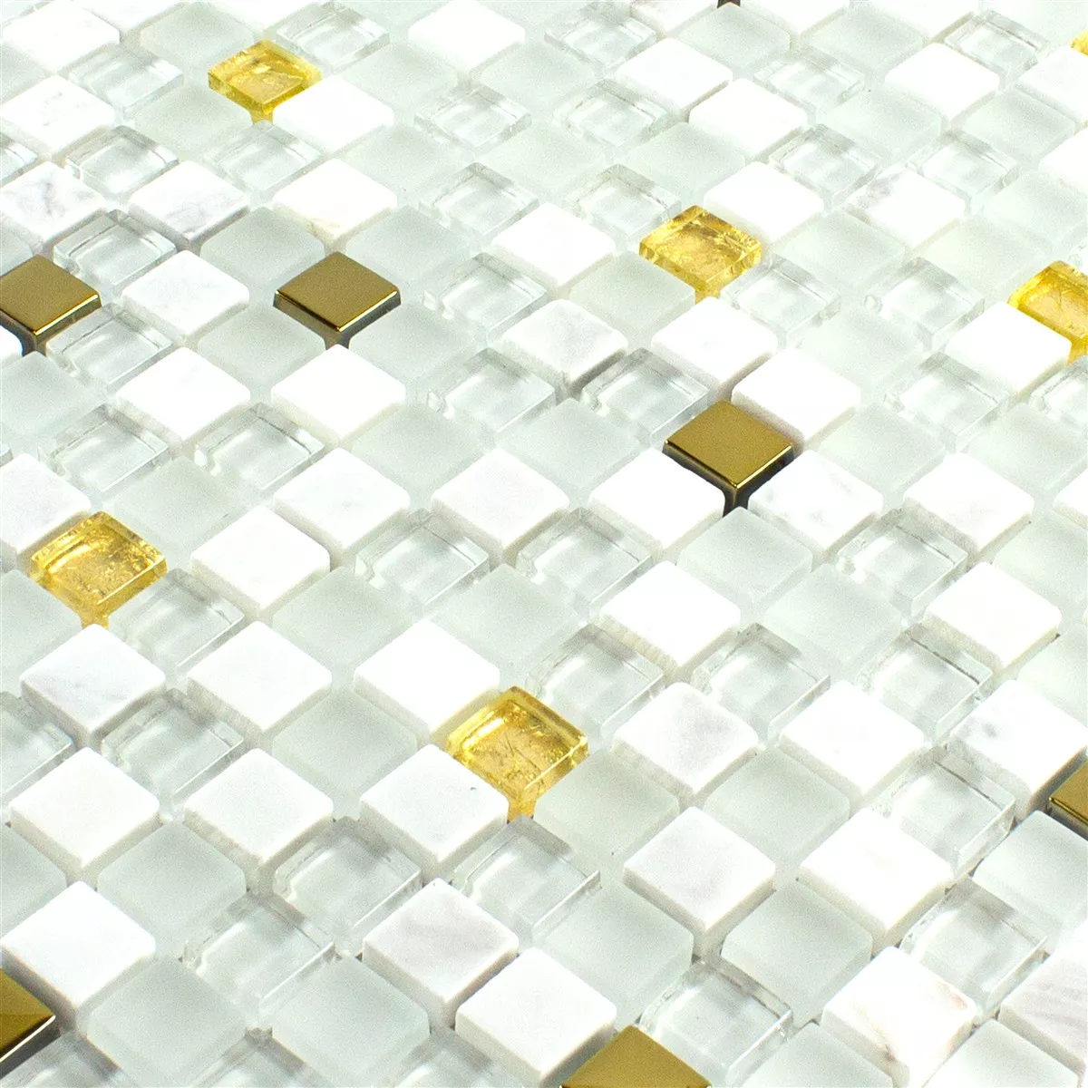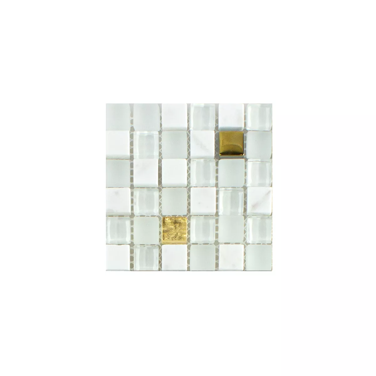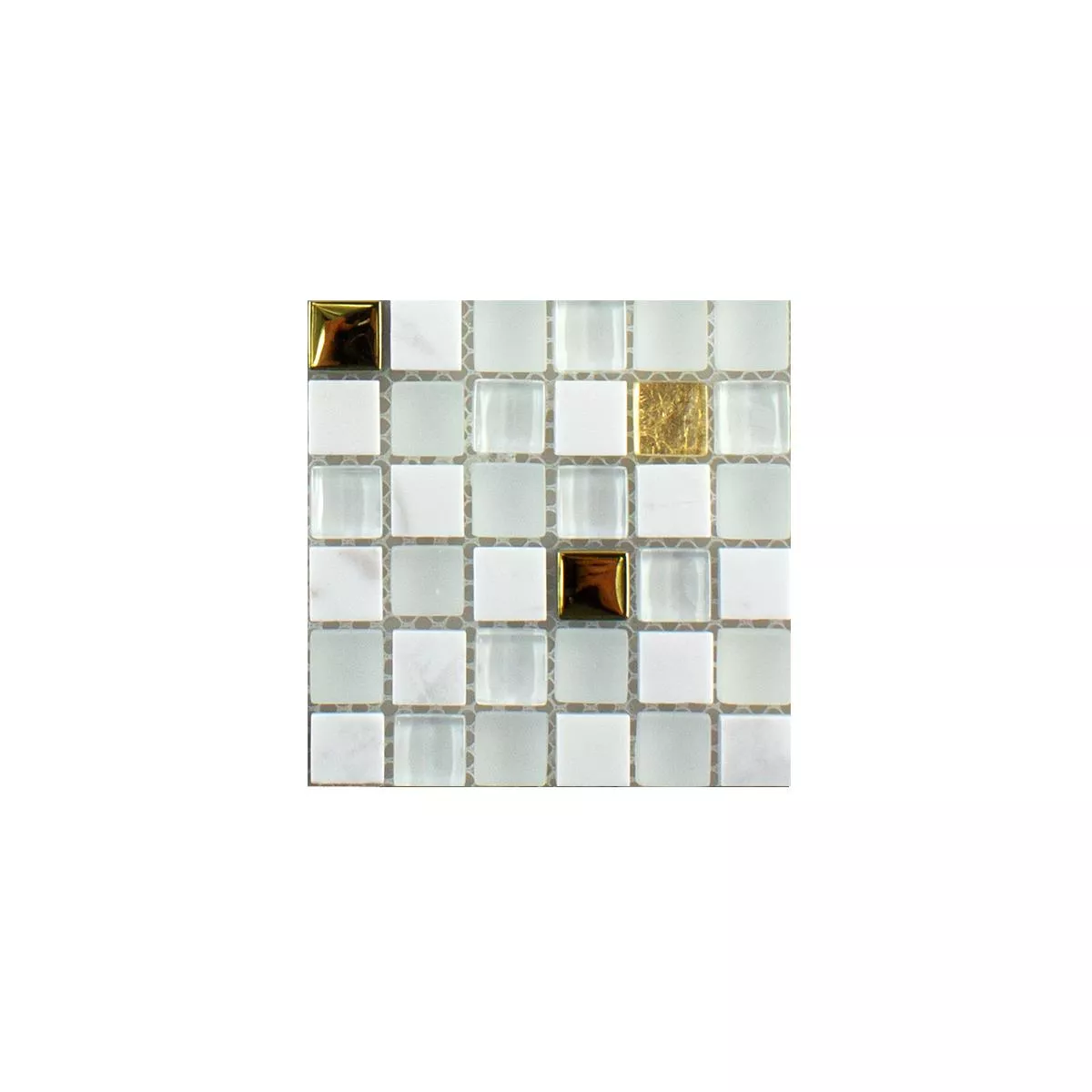Muster von Glas Naturstein Mosaikfliese Maryot Weiss Gold
