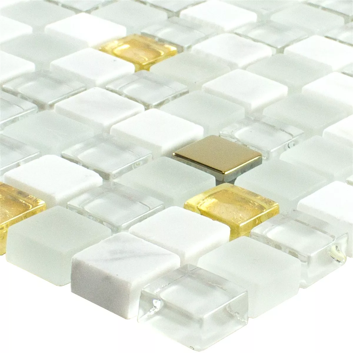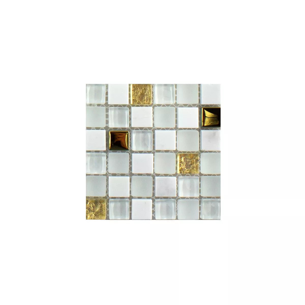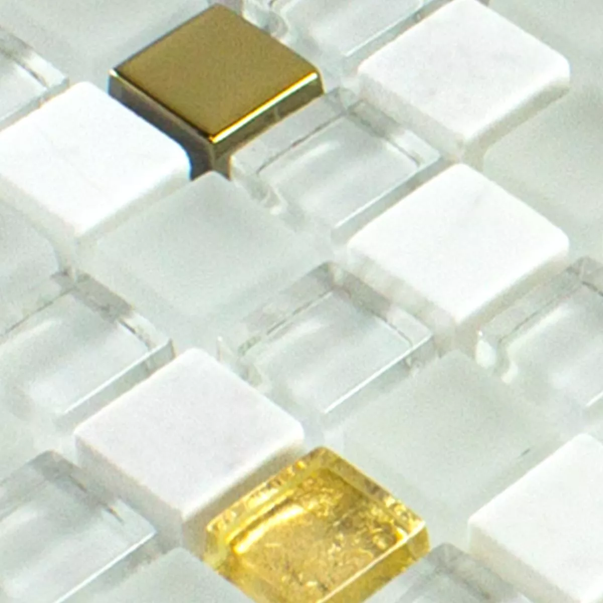 Muster von Glas Naturstein Mosaikfliese Maryot Weiss Gold