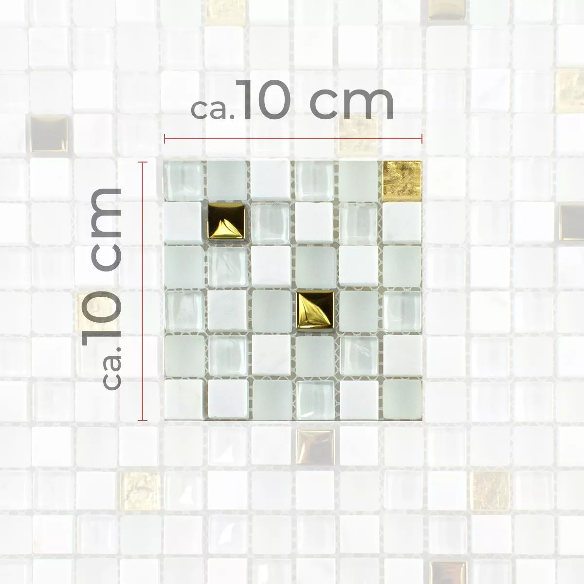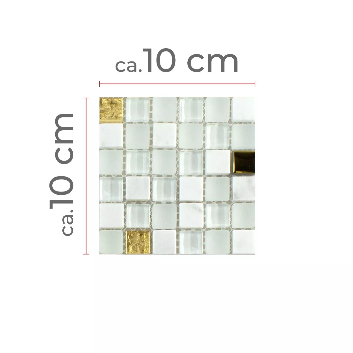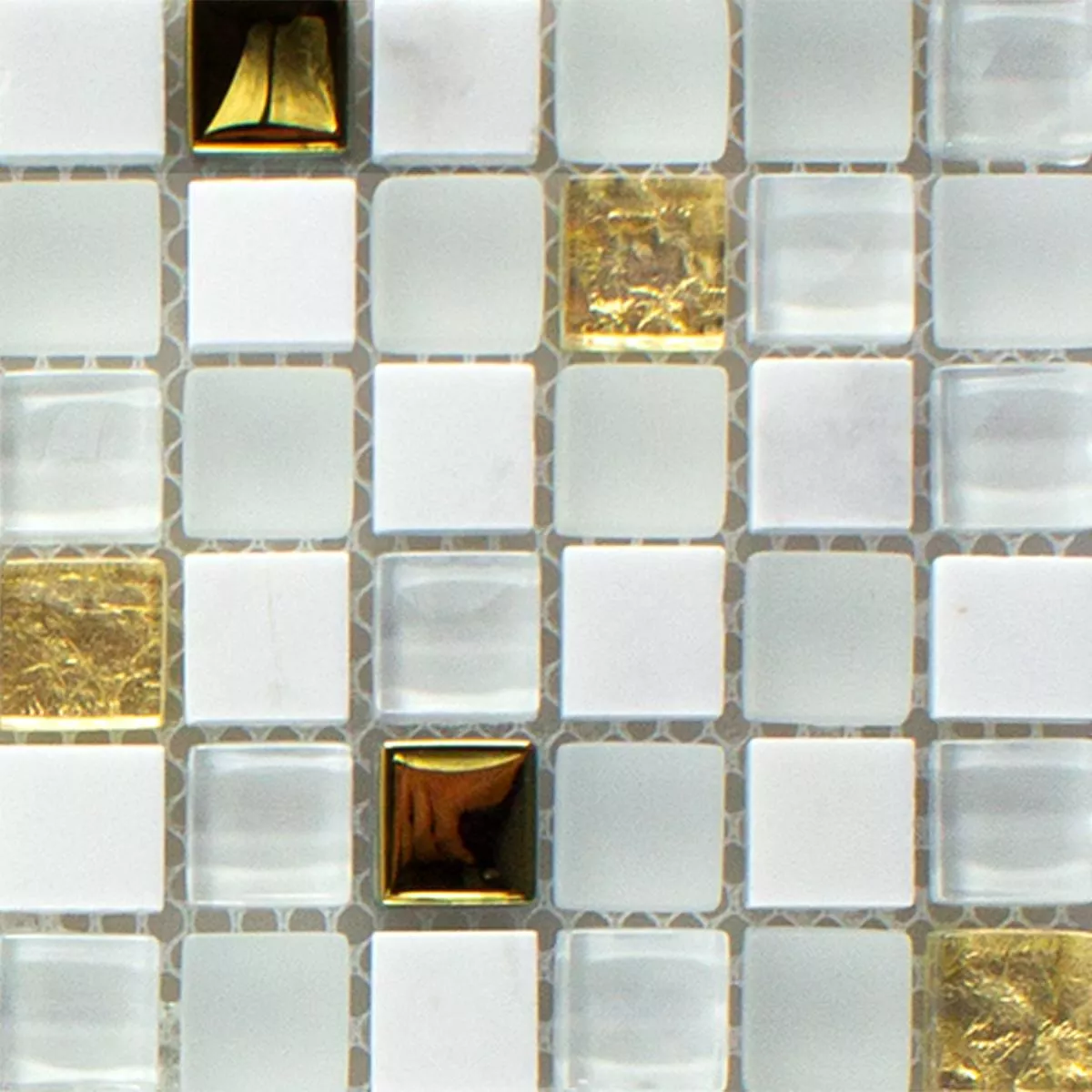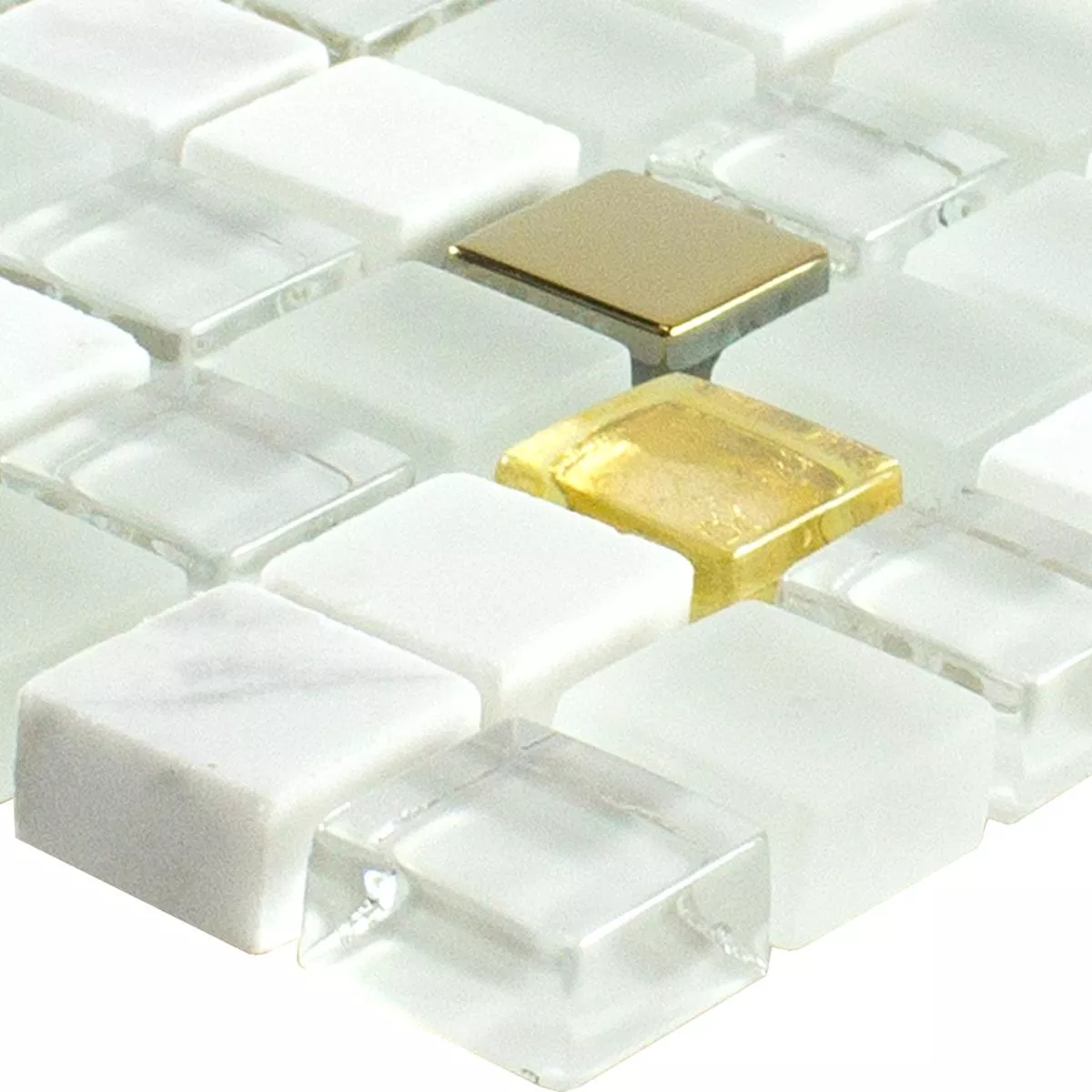 Muster von Glas Naturstein Mosaikfliese Maryot Weiss Gold