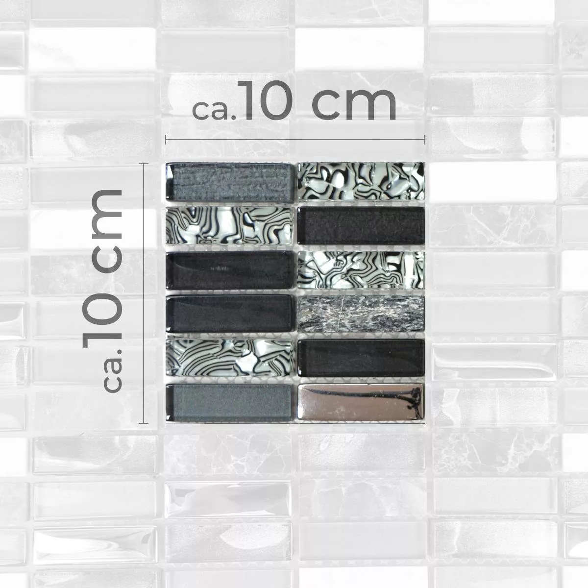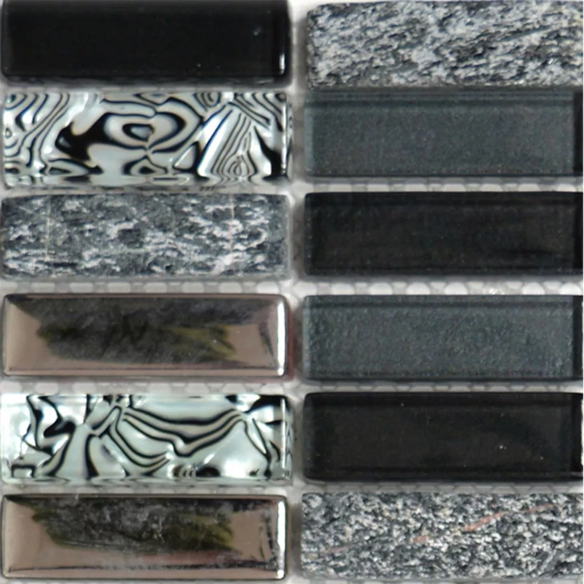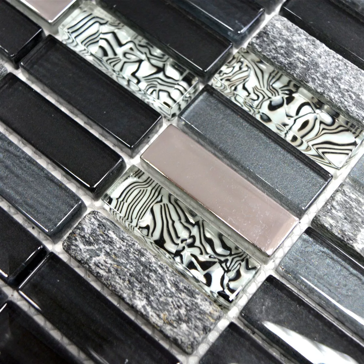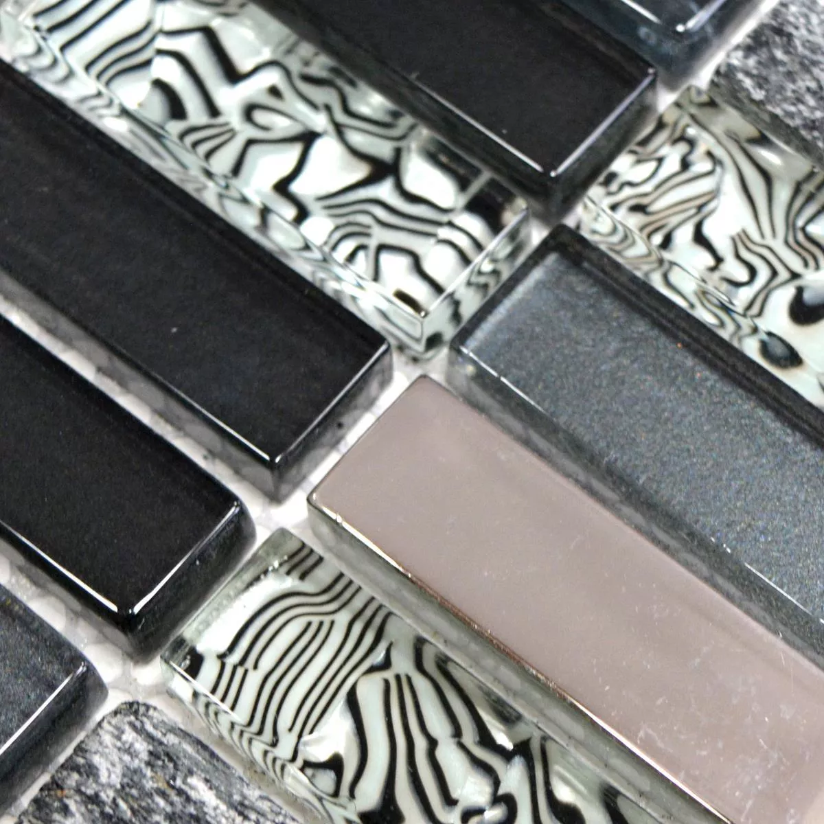Muster von Glas Naturstein Mosaikfliesen Magia Schwarz Stäbchen