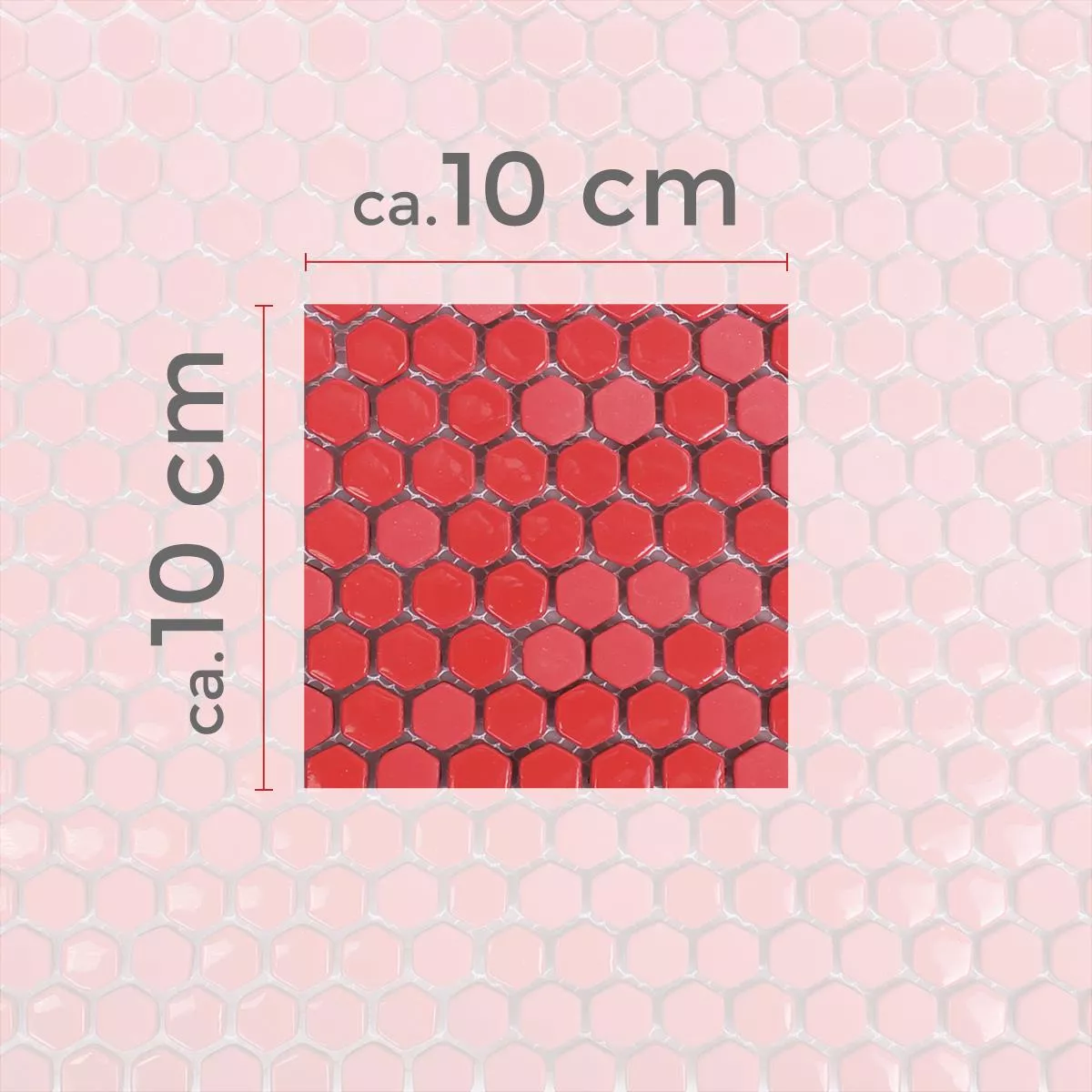 Muster von Glasmosaik Fliesen Brockway Hexagon Eco Rot