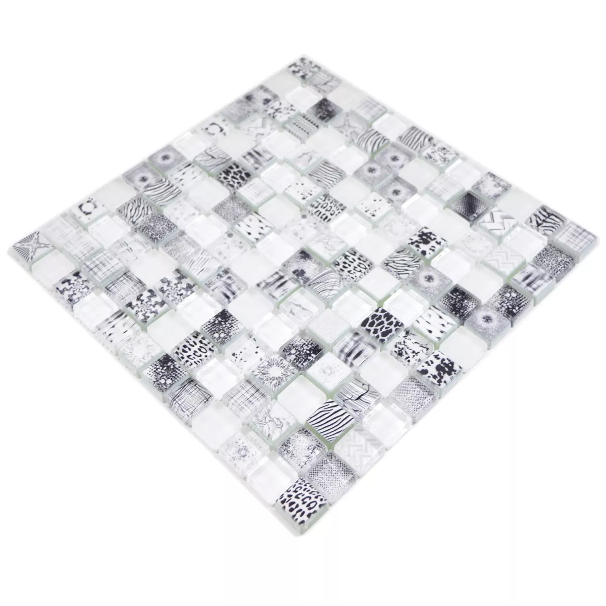 Muster von Glasmosaik Fliesen Cornelia Retrooptik Weiß Grau