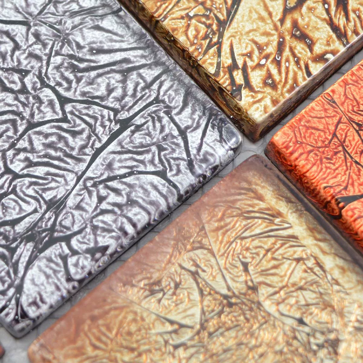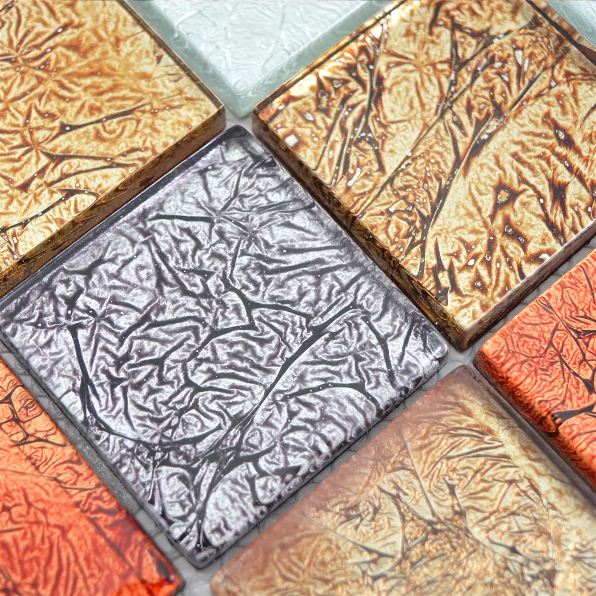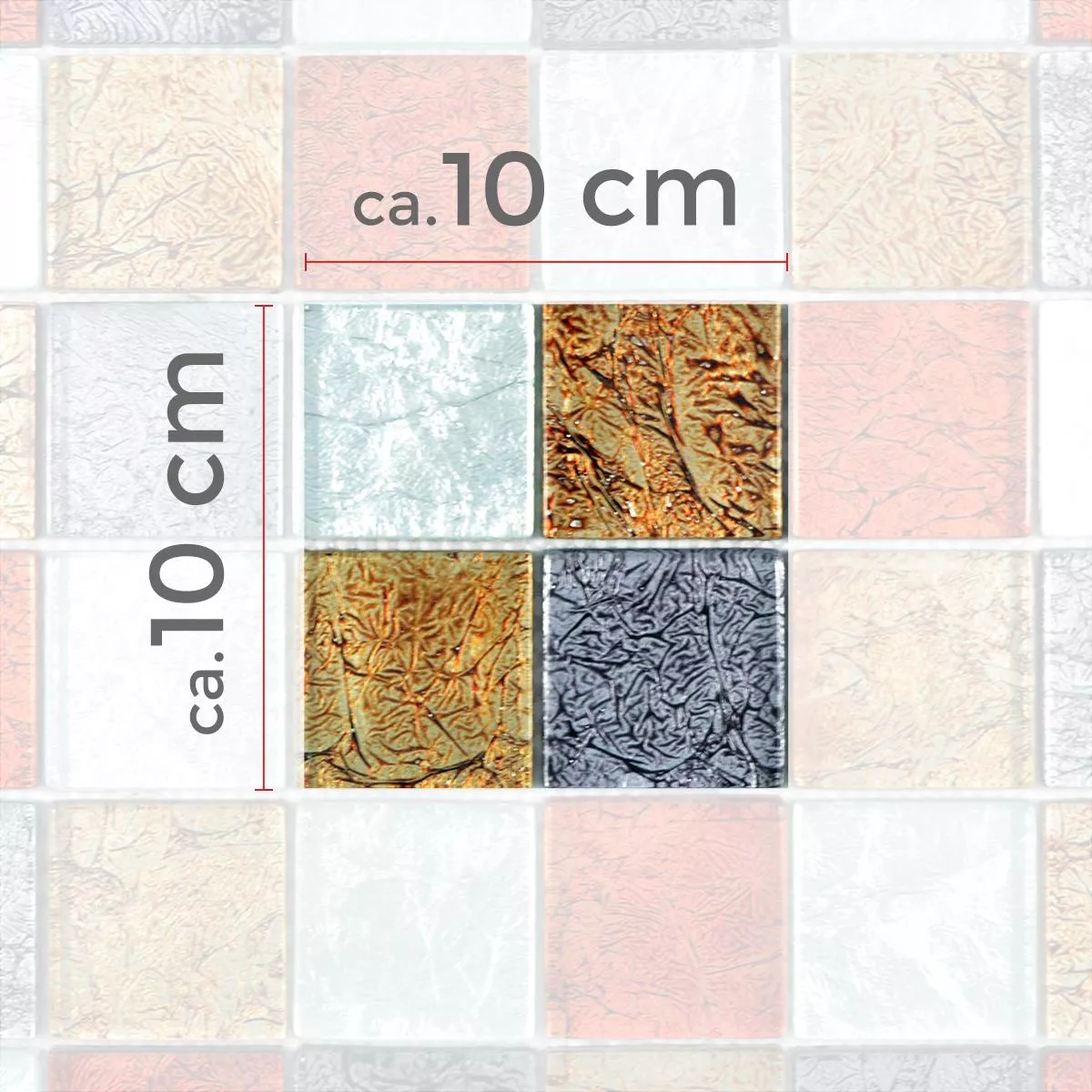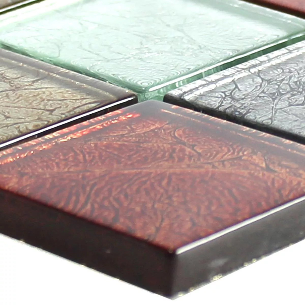 Muster von Glasmosaik Fliesen Curlew Rot Braun Silber Quadrat 48