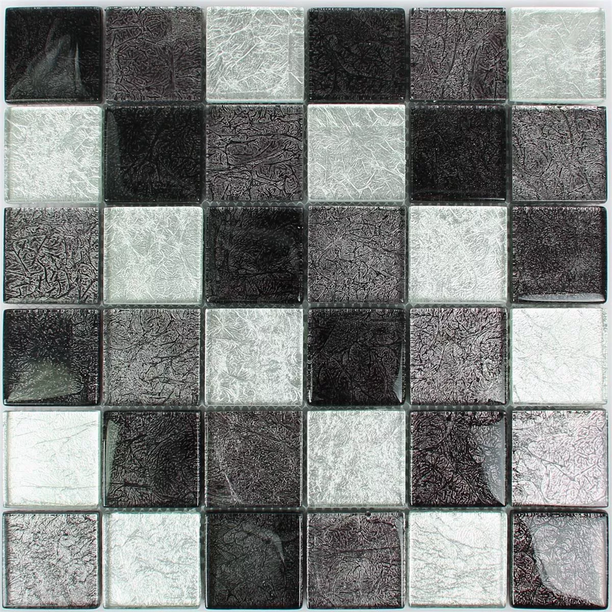 Muster von Glasmosaik Fliesen Curlew Schwarz Silber 48