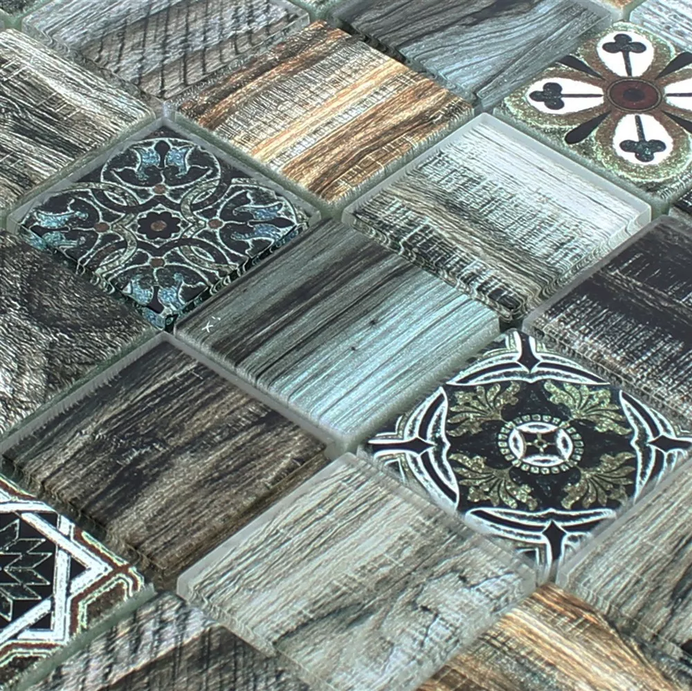 Muster von Glasmosaik Fliesen Holzoptik Makarska Braun Grün