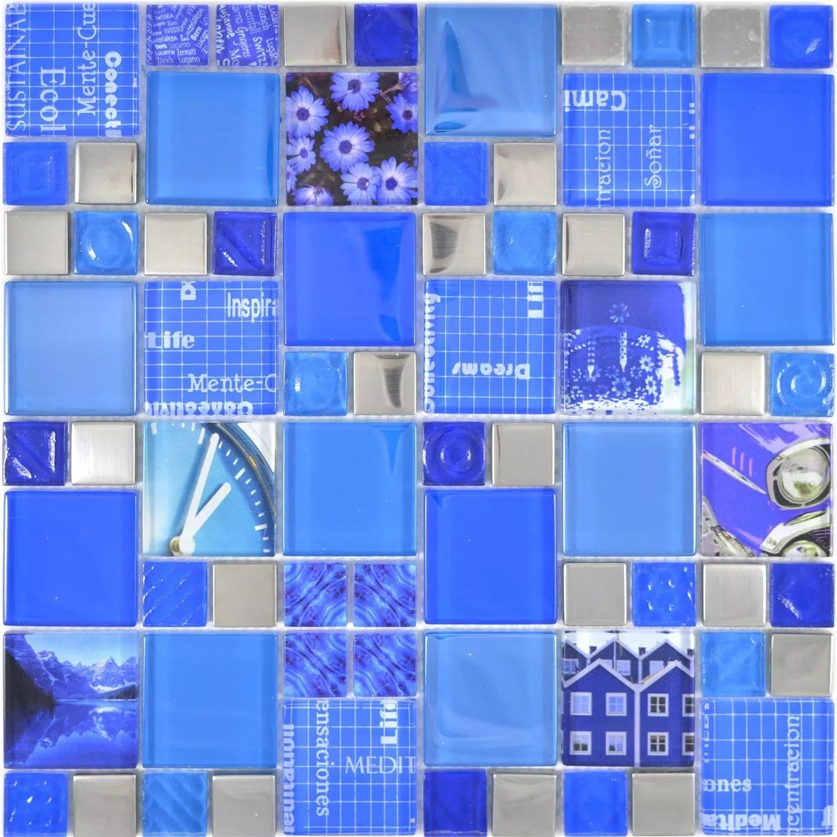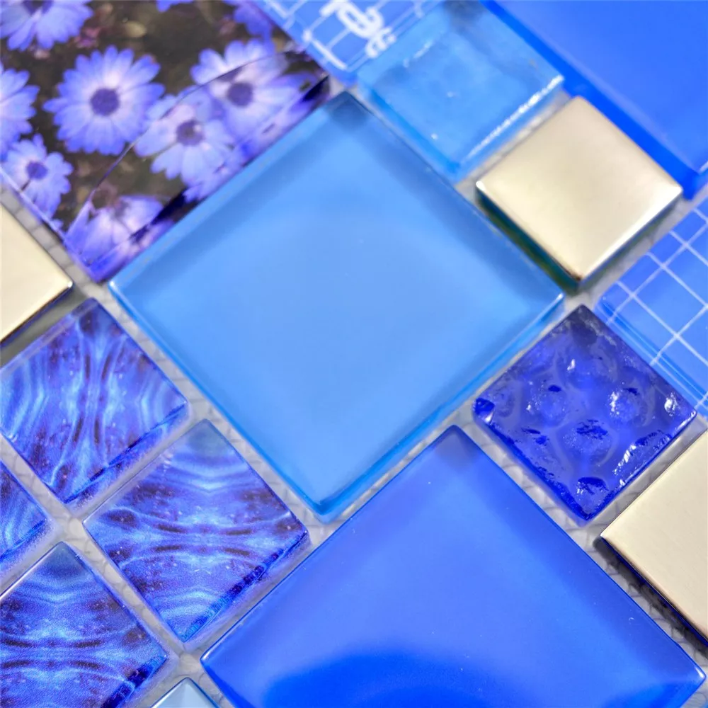 Muster von Glasmosaik Fliesen Nemesis Blau Silber