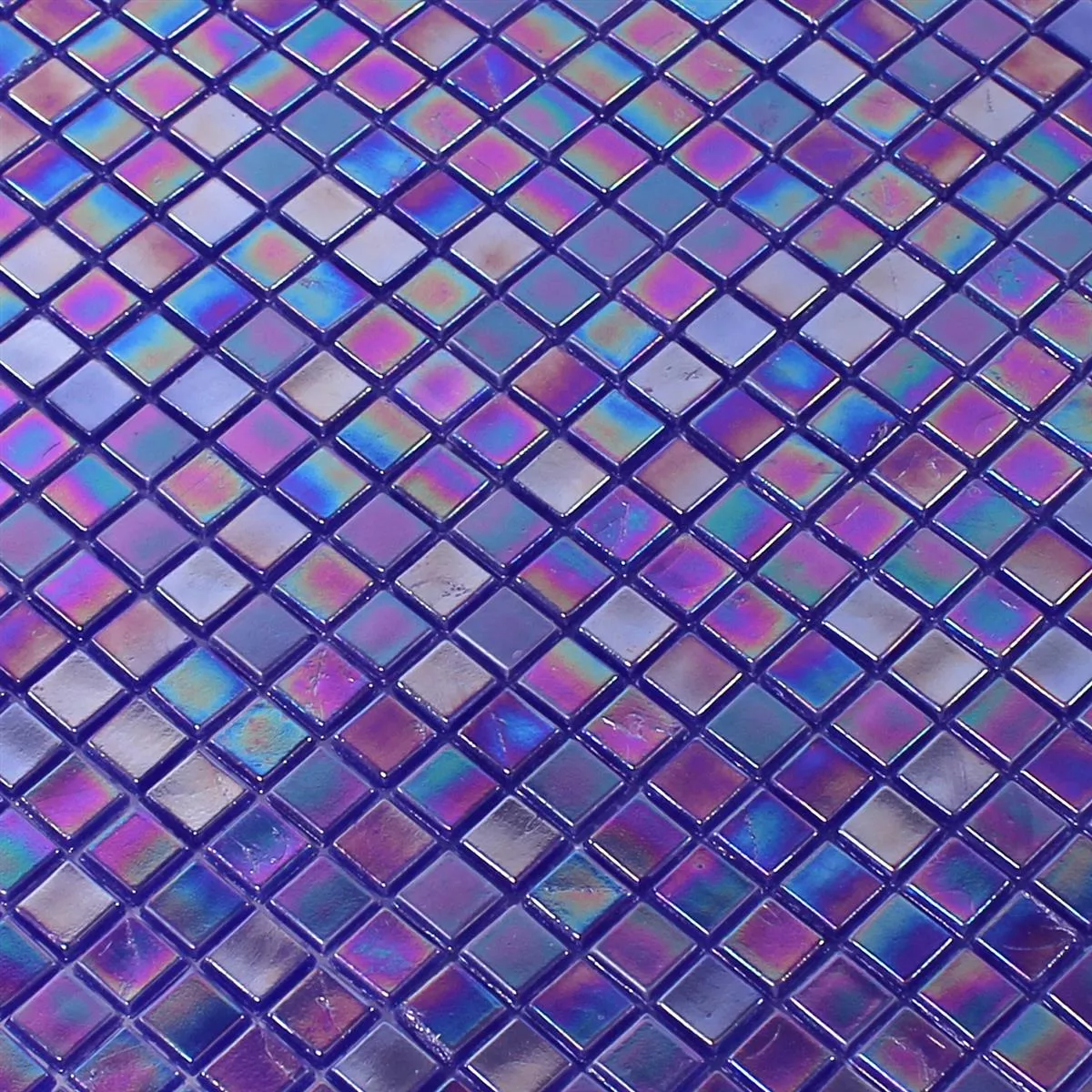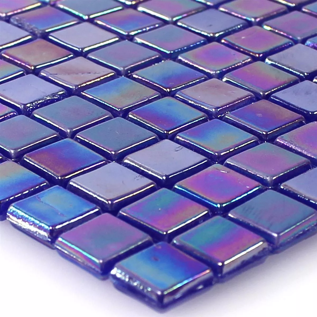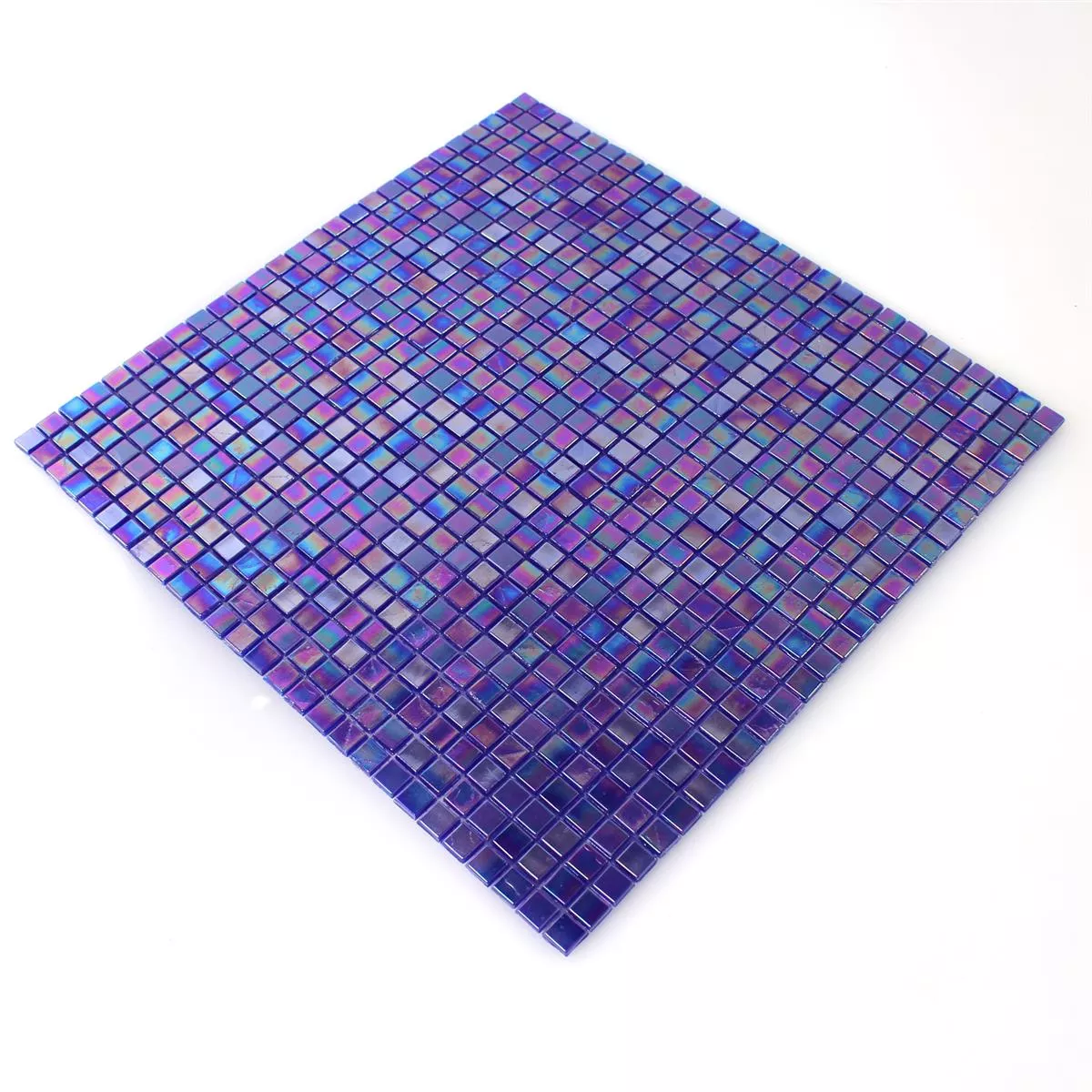 Muster von Glasmosaik Fliesen Perlmutt Effekt Blau Uni