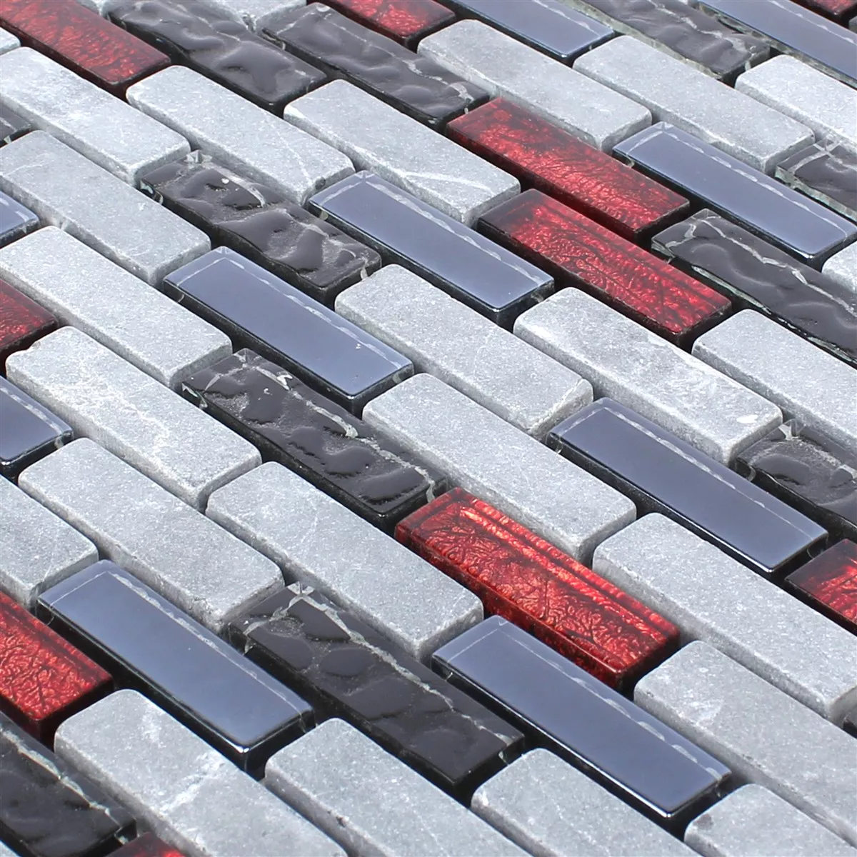 Muster von Glasmosaik Natursteinfliesen Marley Schwarz Rot Grau