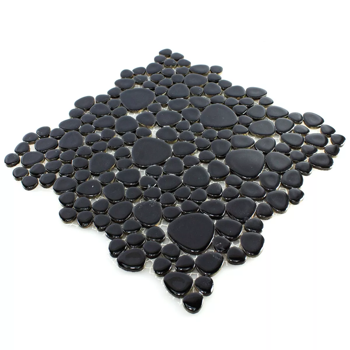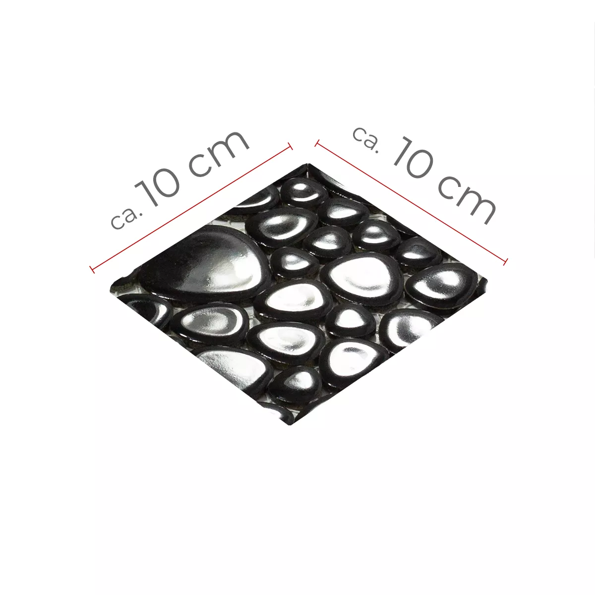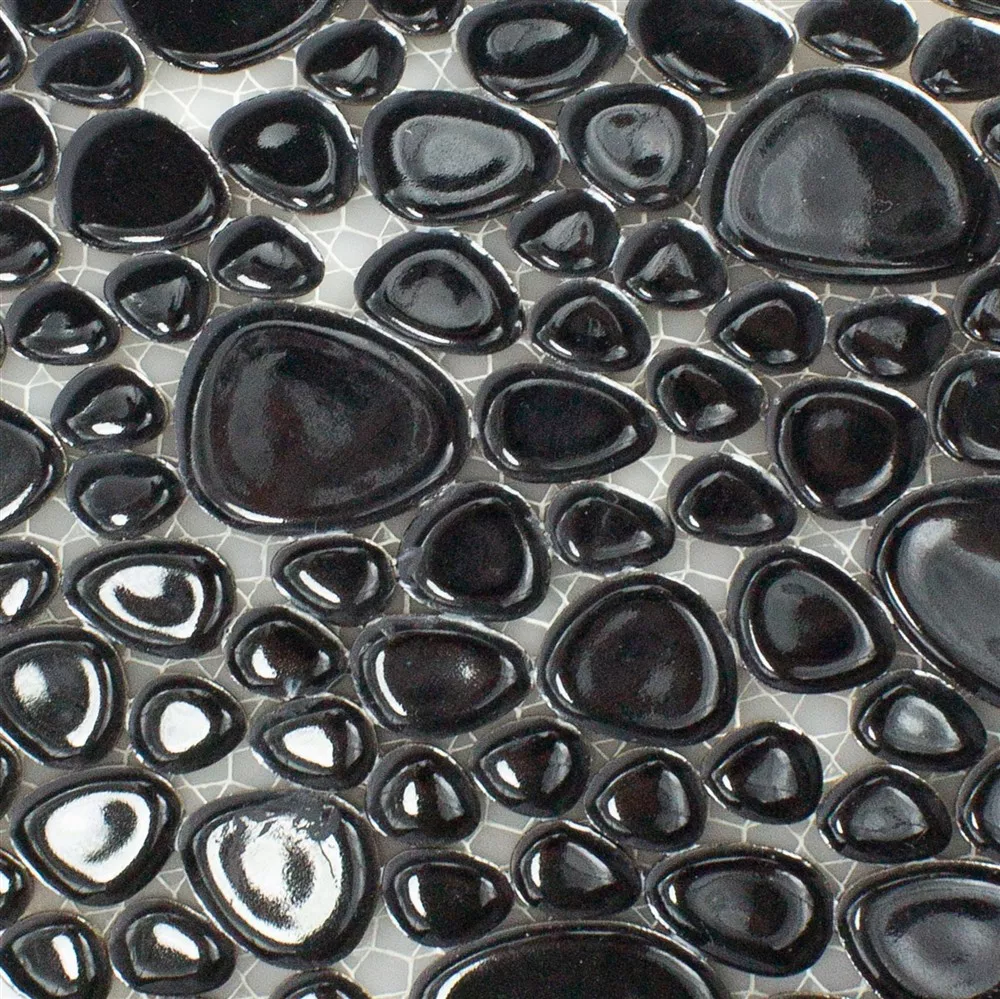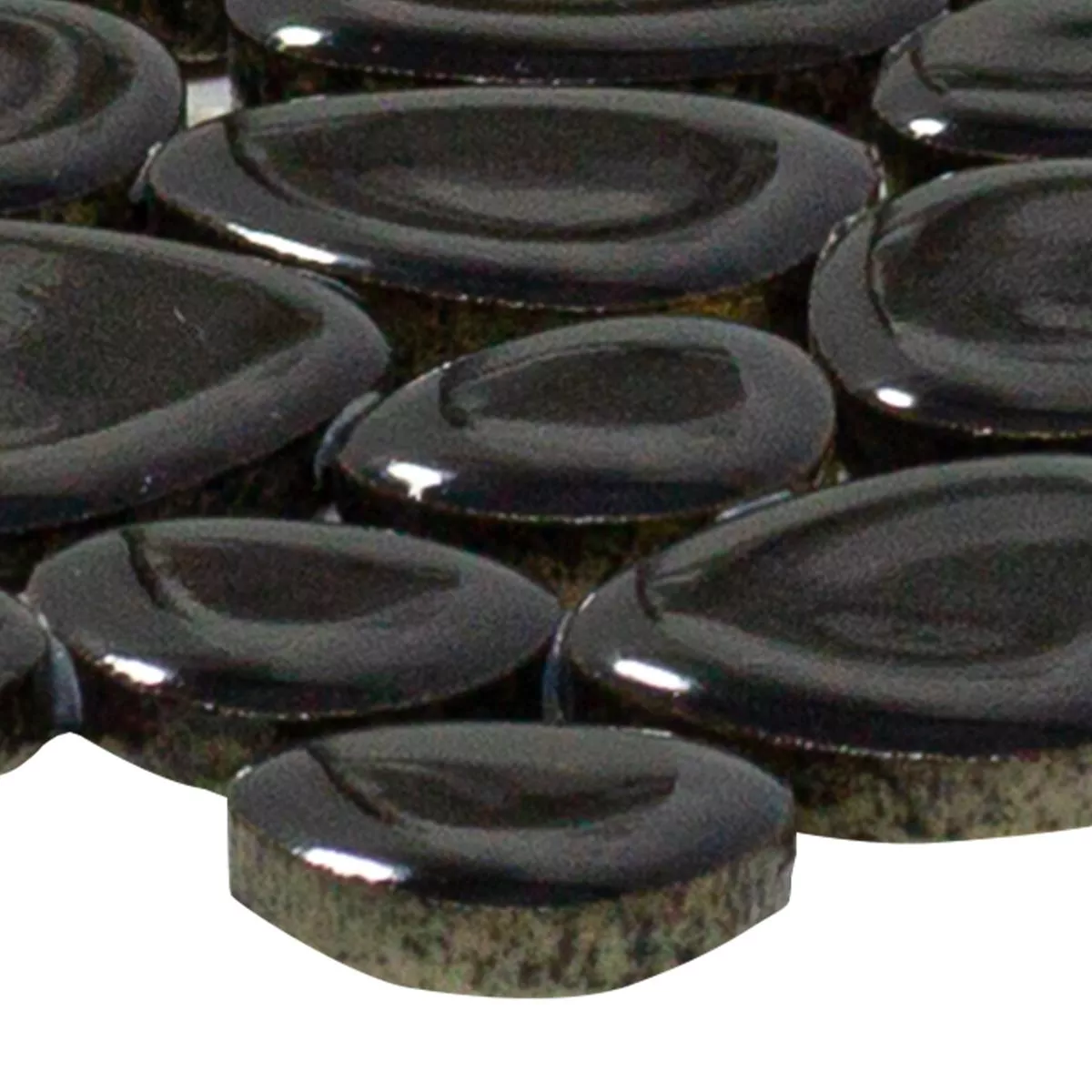 Muster von Keramik Kiesel Mosaik Sabah Schwarz Glänzend
