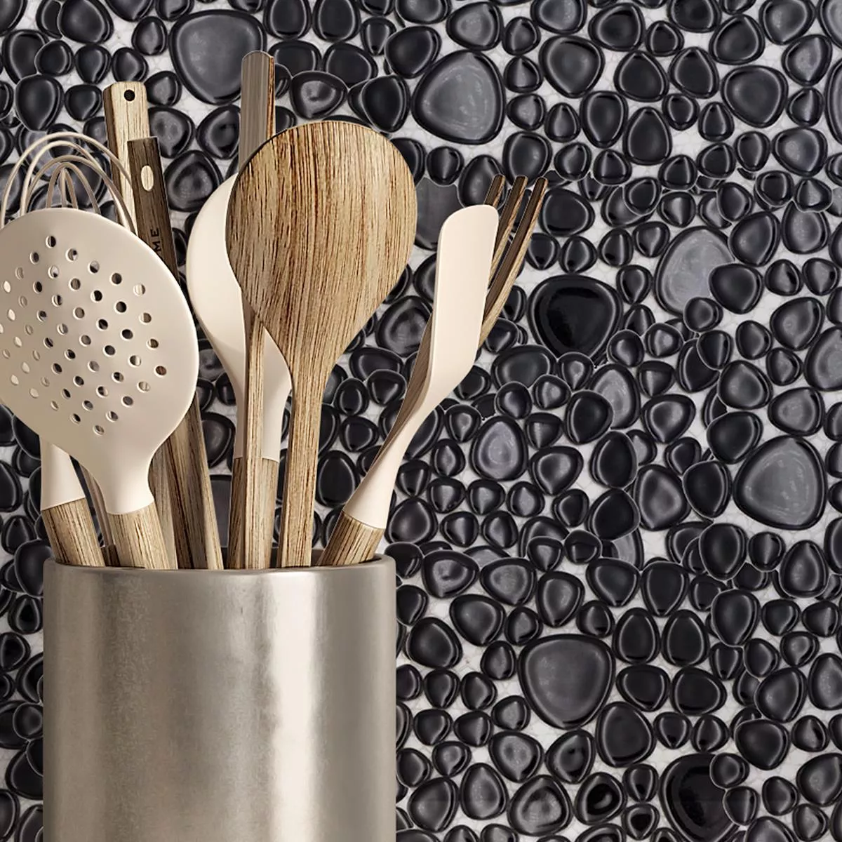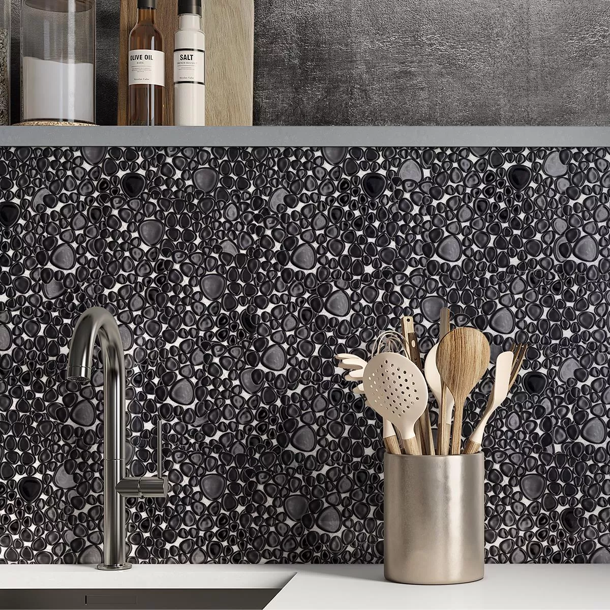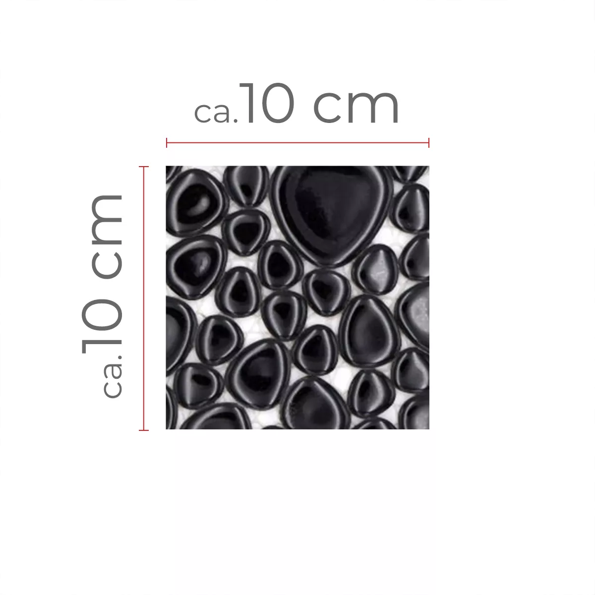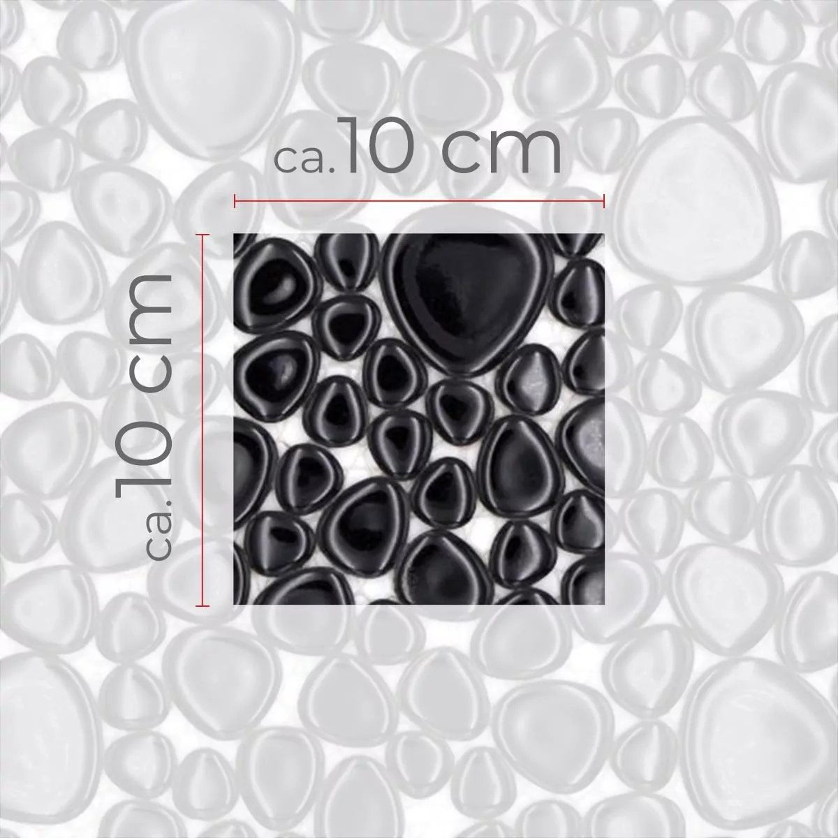 Muster von Keramik Kiesel Mosaik Sabah Schwarz Glänzend