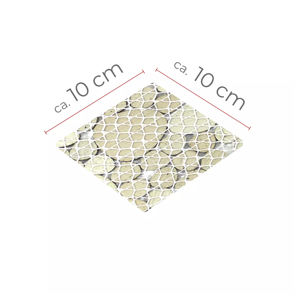 Jede Fliese und jedes Mosaik haben aufgrund individueller Materialeigenschaften und Anwendungsbedingungen unterschiedliche Anforderungen an das Zuschneiden, Verlegen und Verarbeiten. Fragen Sie einen örtlichen Experten für das korrekte und sichere Verlegen Ihrer Mosaike oder Fliesen. Wir haften nicht für unsachgemäßen Gebrauch und fehlerhafte Verarbeitung von Baumaterialien.