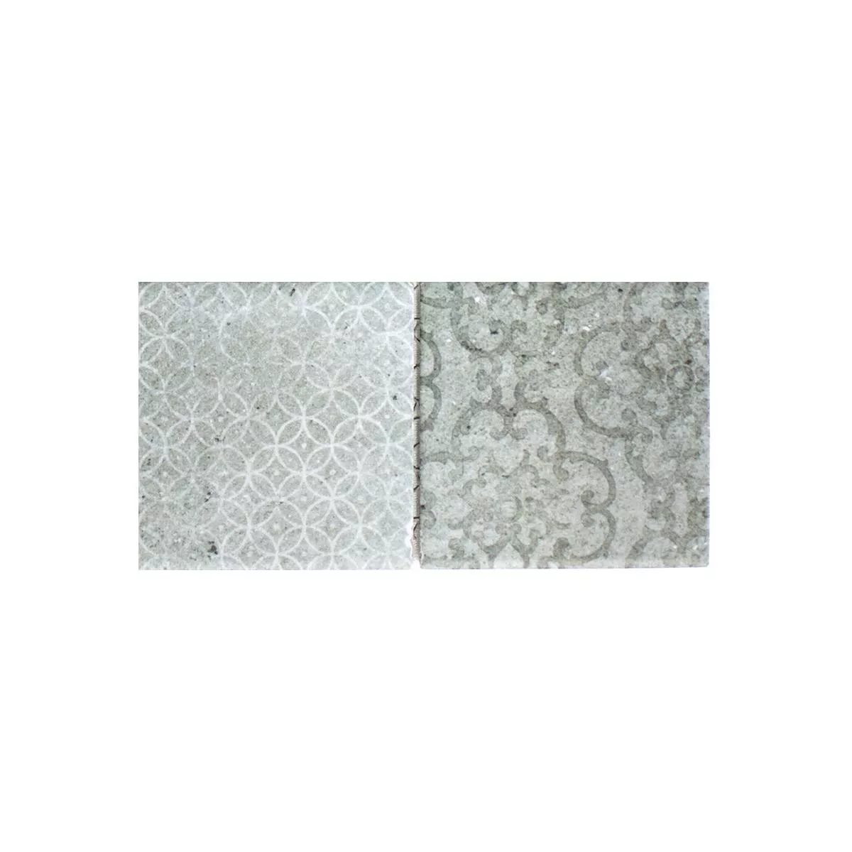 Muster von Keramik Mosaikfliesen Campeche Zementoptik Grau