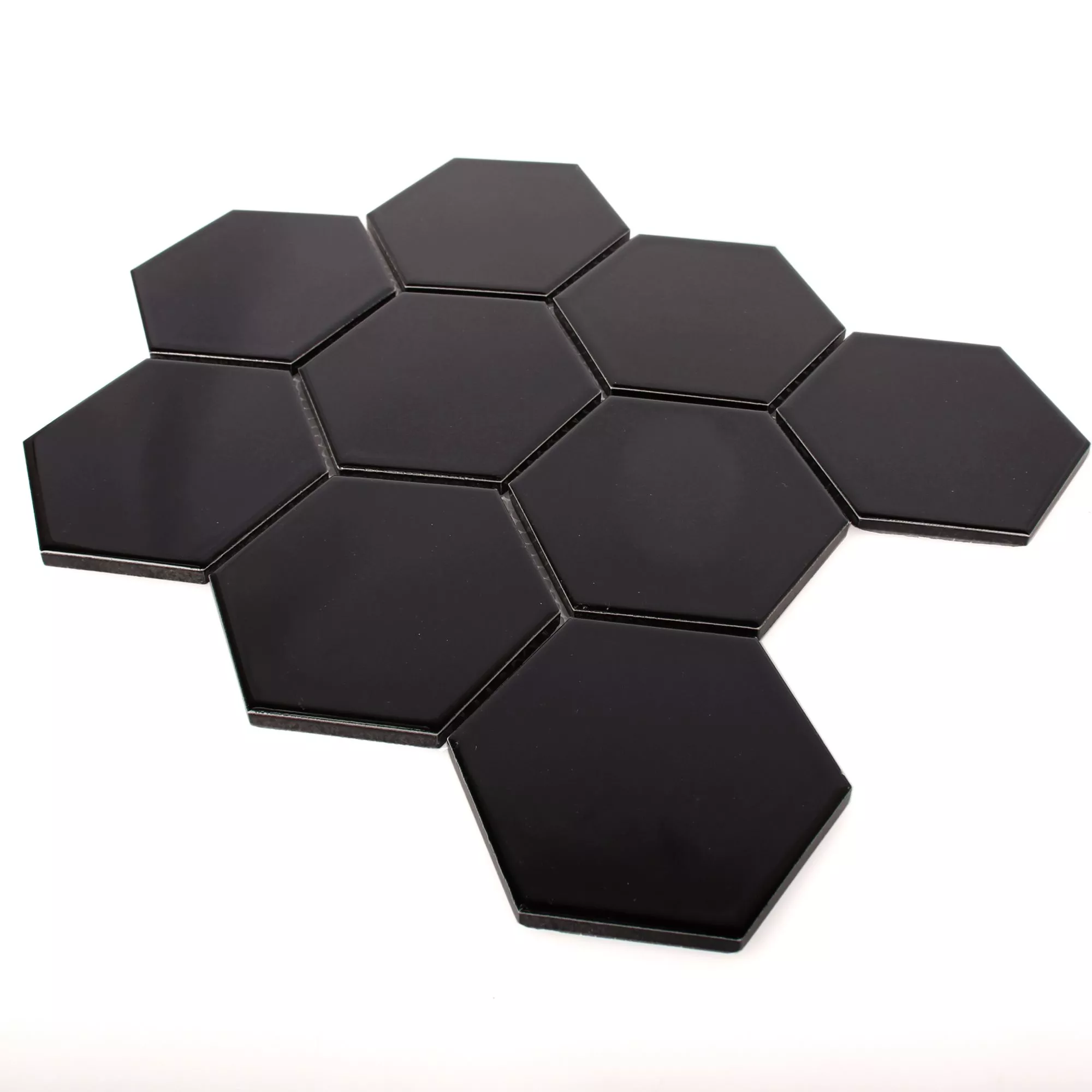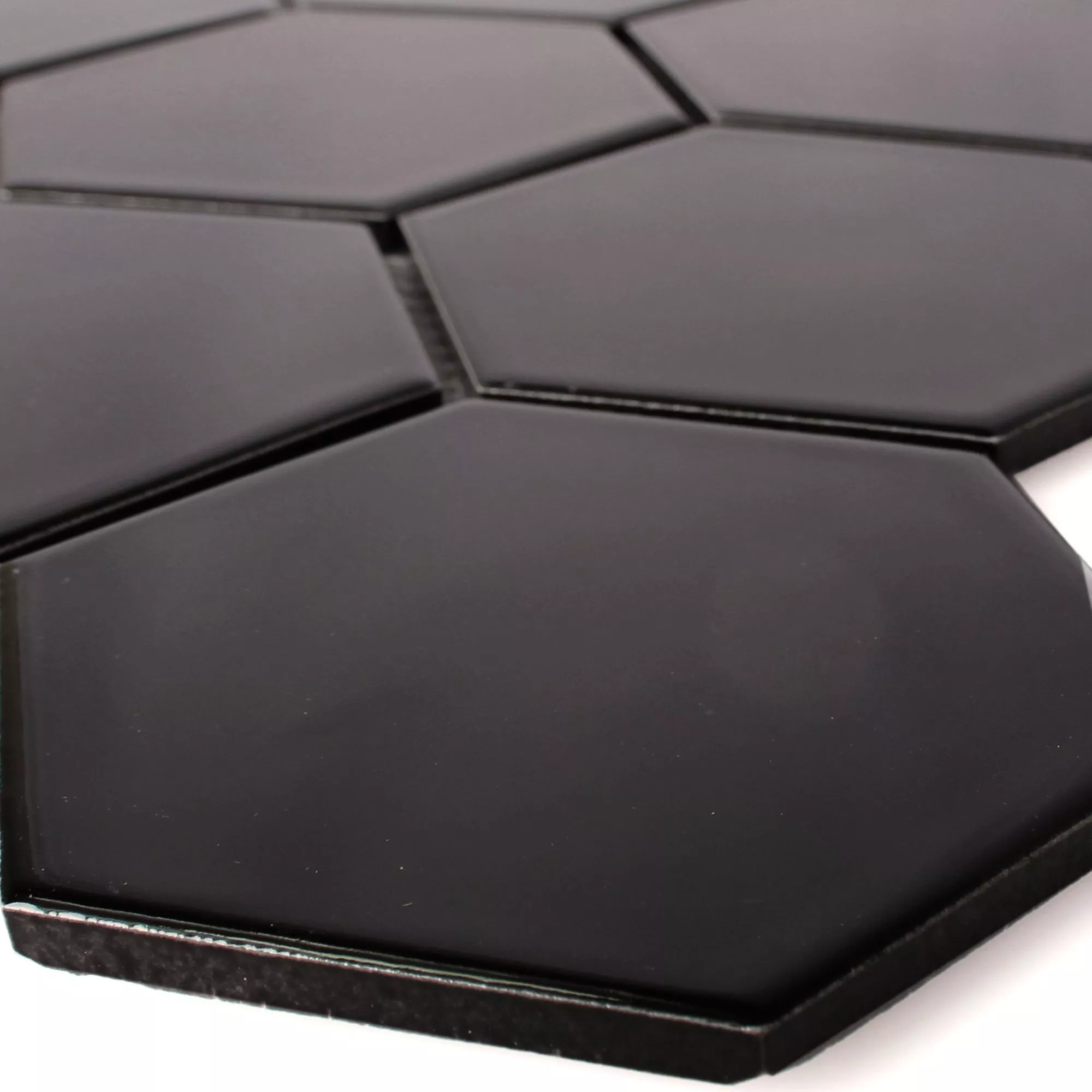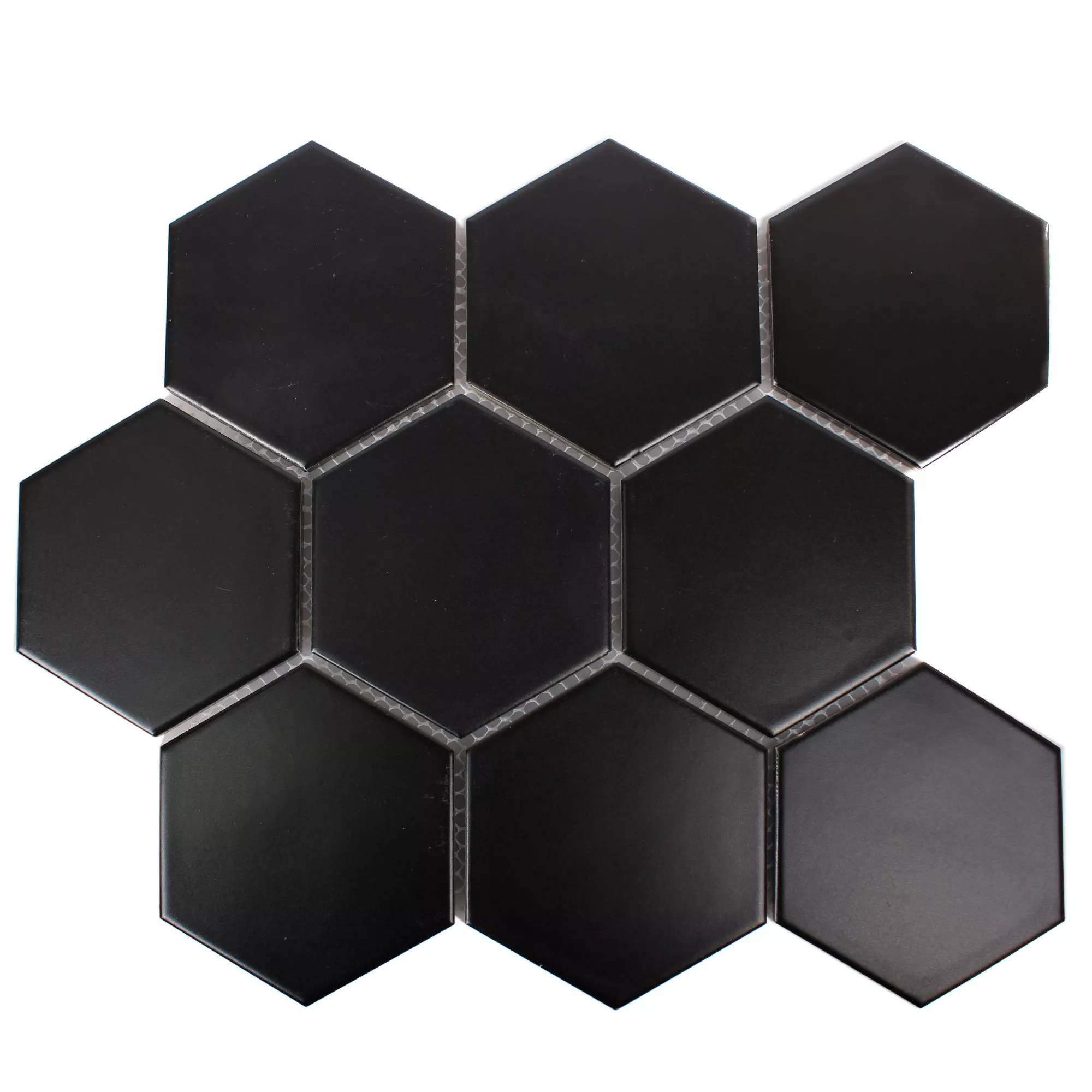 Muster von Keramik Mosaikfliesen Hexagon Salamanca Schwarz Matt H95