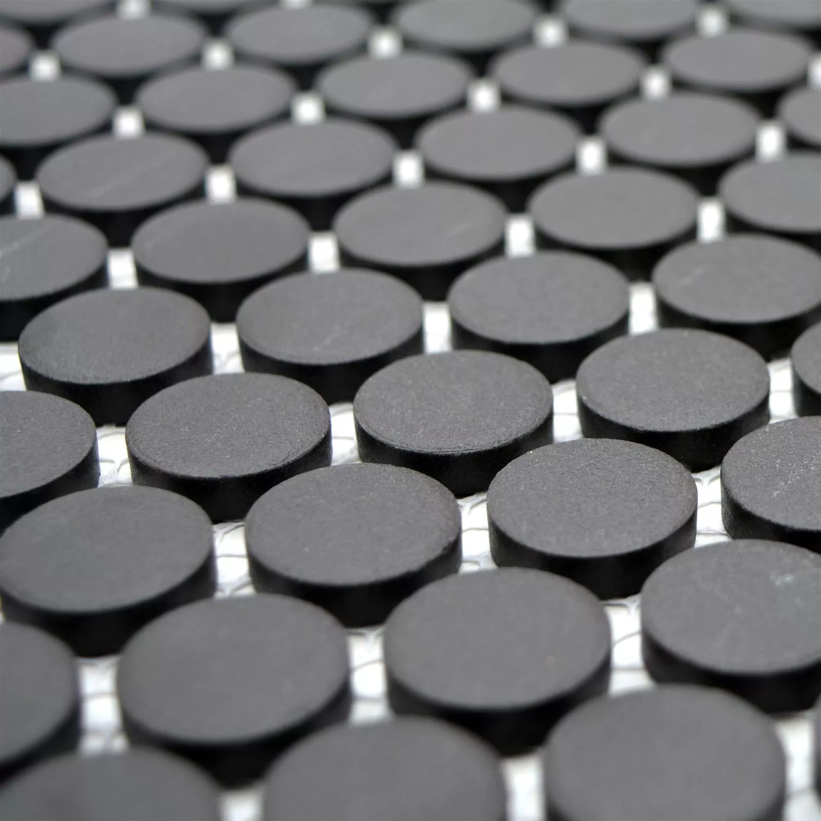 Muster von Keramik Mosaikfliesen Knopf Radoslov Unglasiert Schwarz
