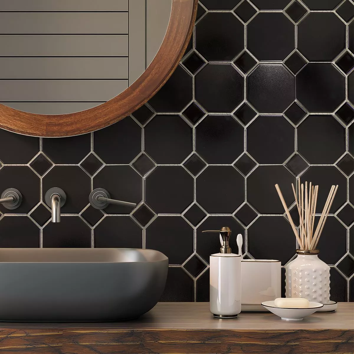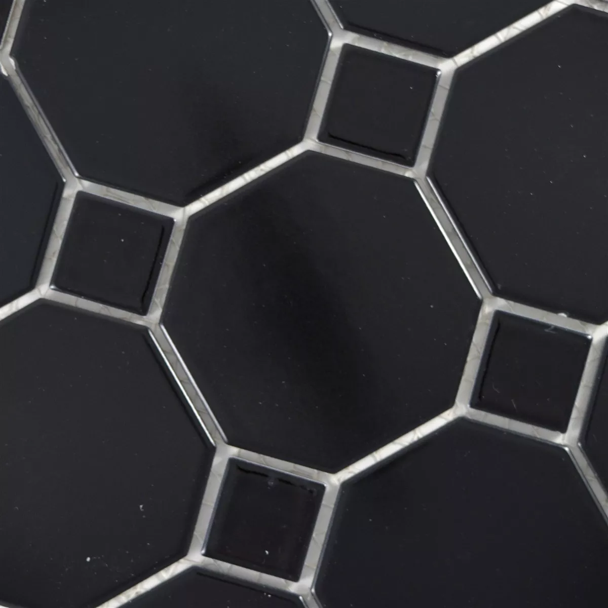 Muster von Keramik Mosaikfliesen Octagon Fürstenberg Schwarz