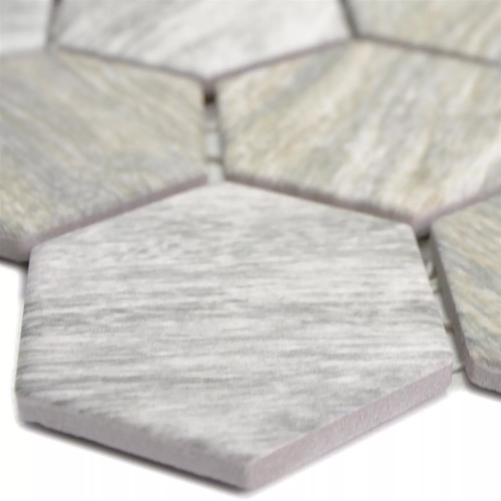 Muster von Keramikmosaik Fliesen Elmshorn Hexagon Steinoptik Grau