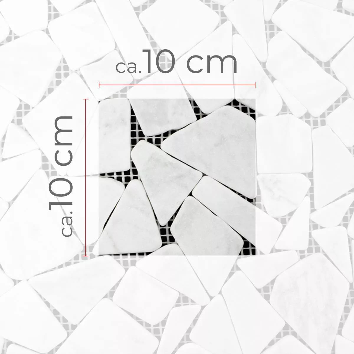 Jede Fliese und jedes Mosaik haben aufgrund individueller Materialeigenschaften und Anwendungsbedingungen unterschiedliche Anforderungen an das Zuschneiden, Verlegen und Verarbeiten. Fragen Sie einen örtlichen Experten für das korrekte und sichere Verlegen Ihrer Mosaike oder Fliesen. Wir haften nicht für unsachgemäßen Gebrauch und fehlerhafte Verarbeitung von Baumaterialien.