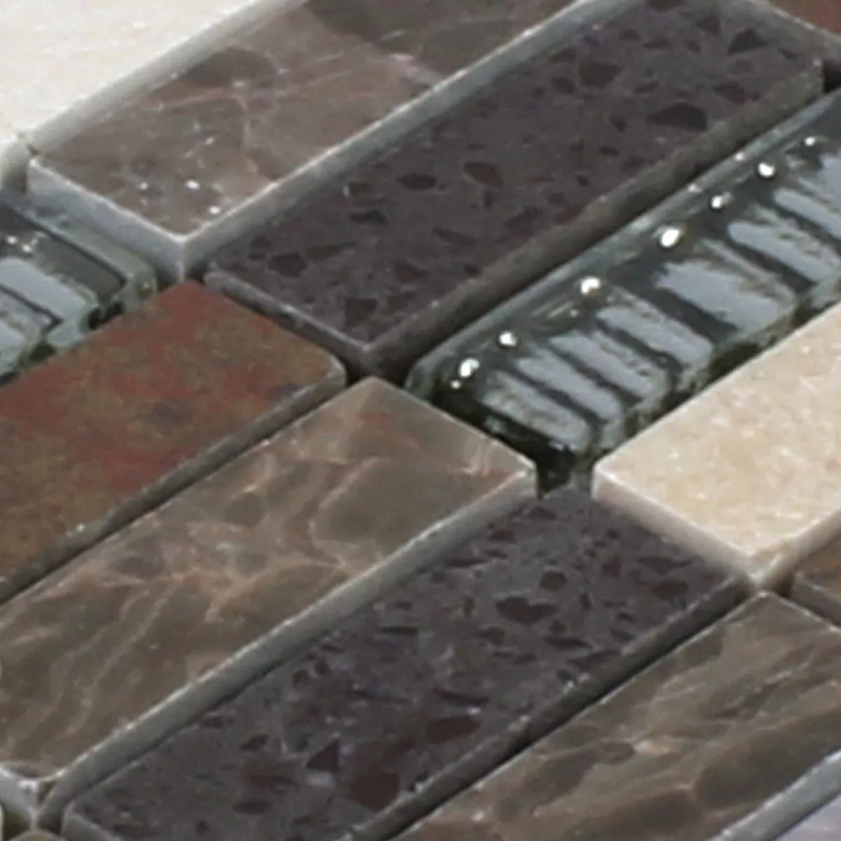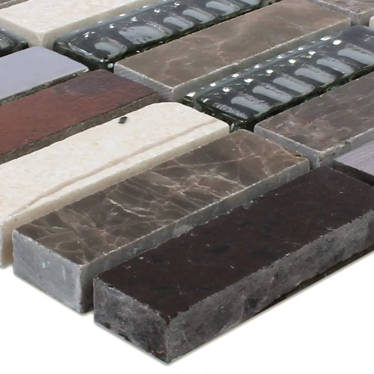 Muster von Metall Glas Naturstein Mosaikfliesen Acadia Beige Braun