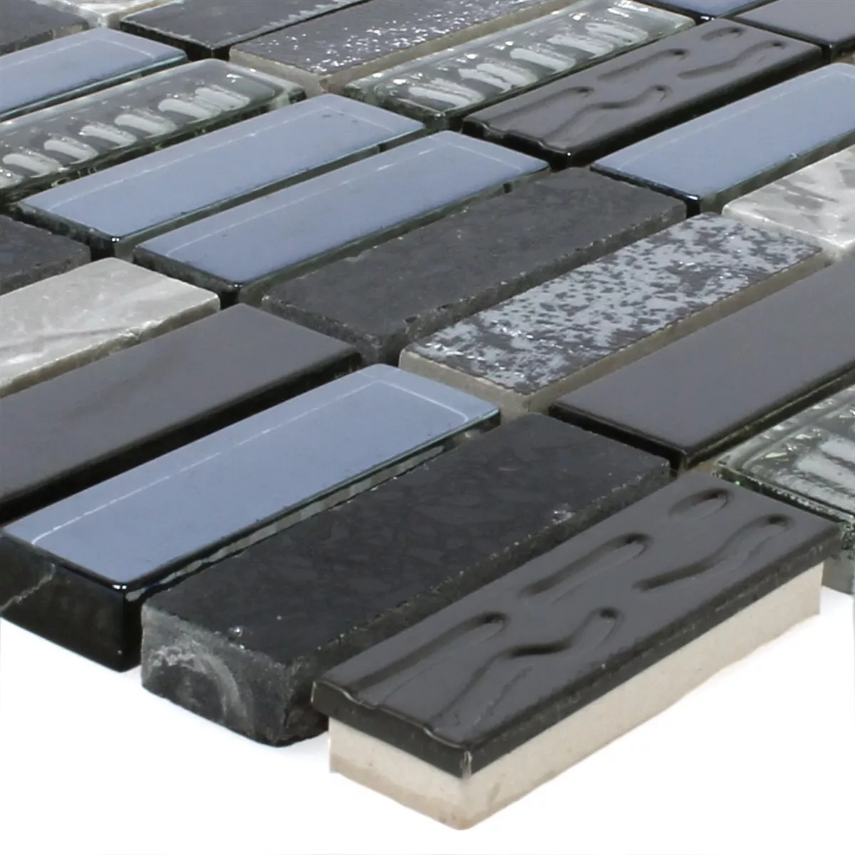 Muster von Metall Glas Naturstein Mosaikfliesen Acadia Schwarz