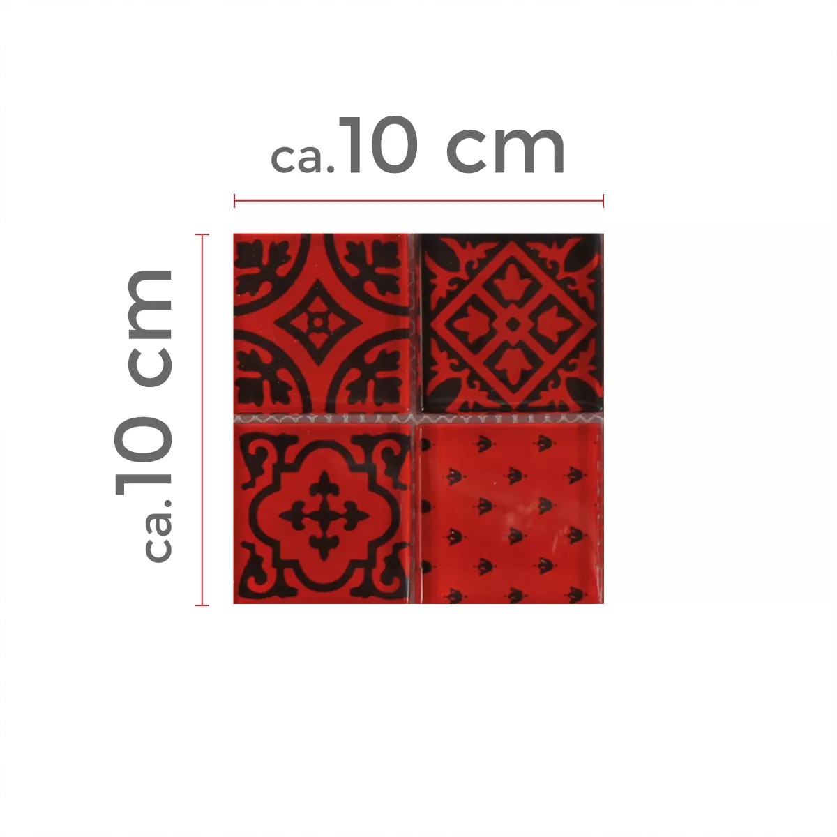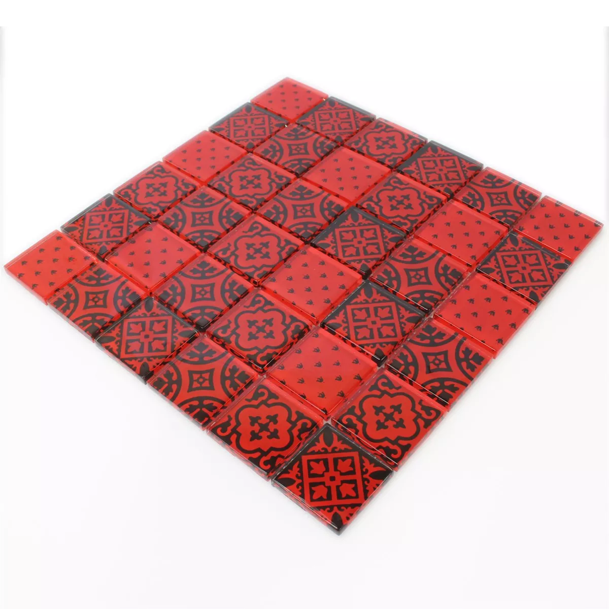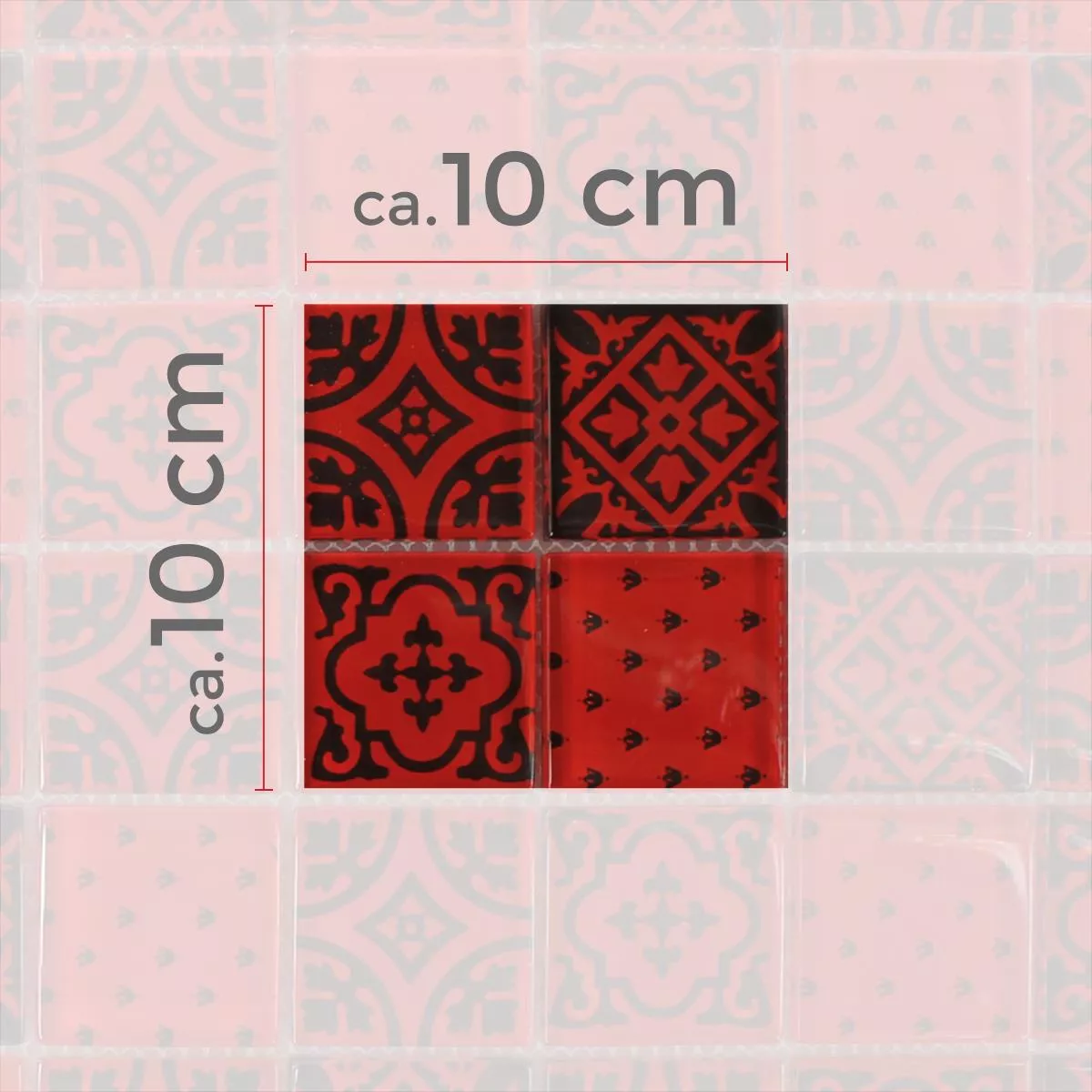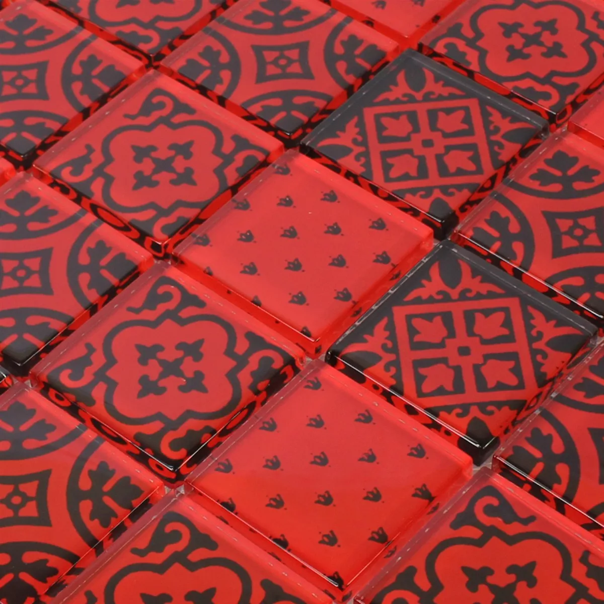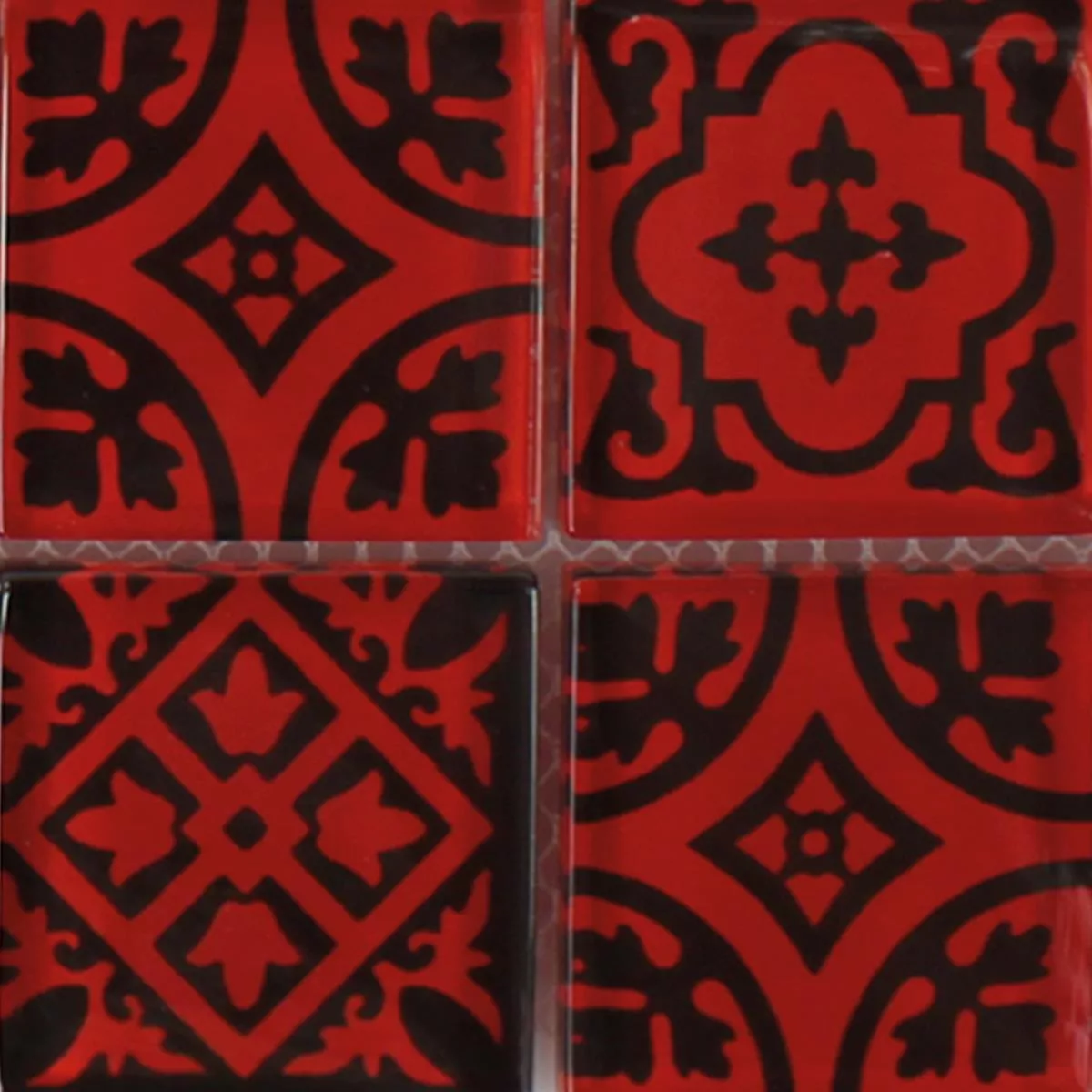 Muster von Mosaikfliesen Glas Barock Ornament Rot