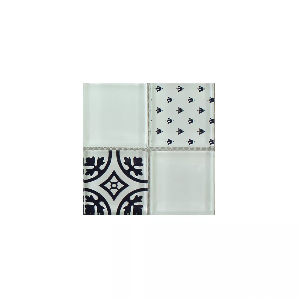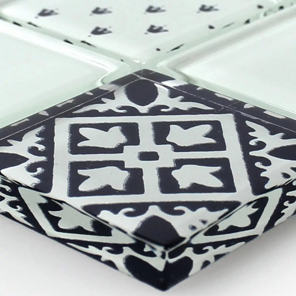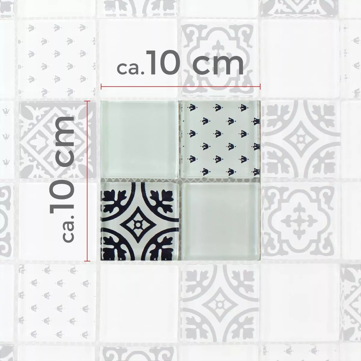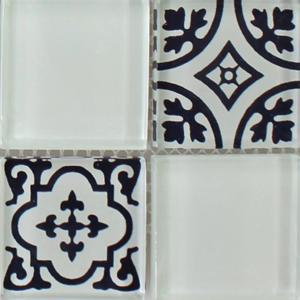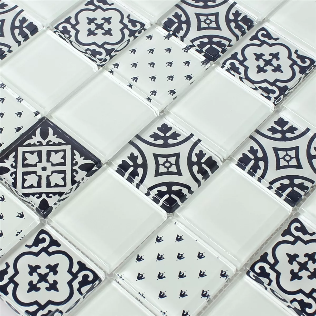 Muster von Mosaikfliesen Glas Barock Ornament Weiss