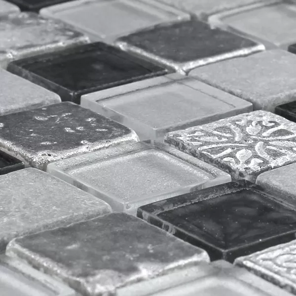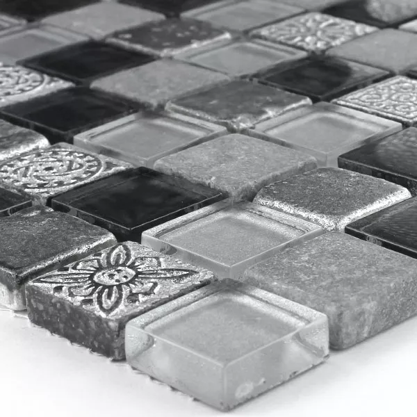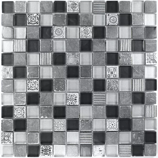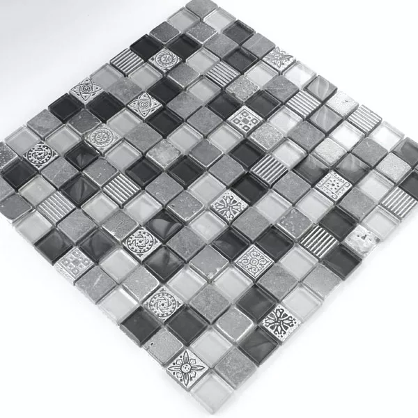 Muster von Mosaikfliesen Glas Kalkstein Marmor Boston Grau