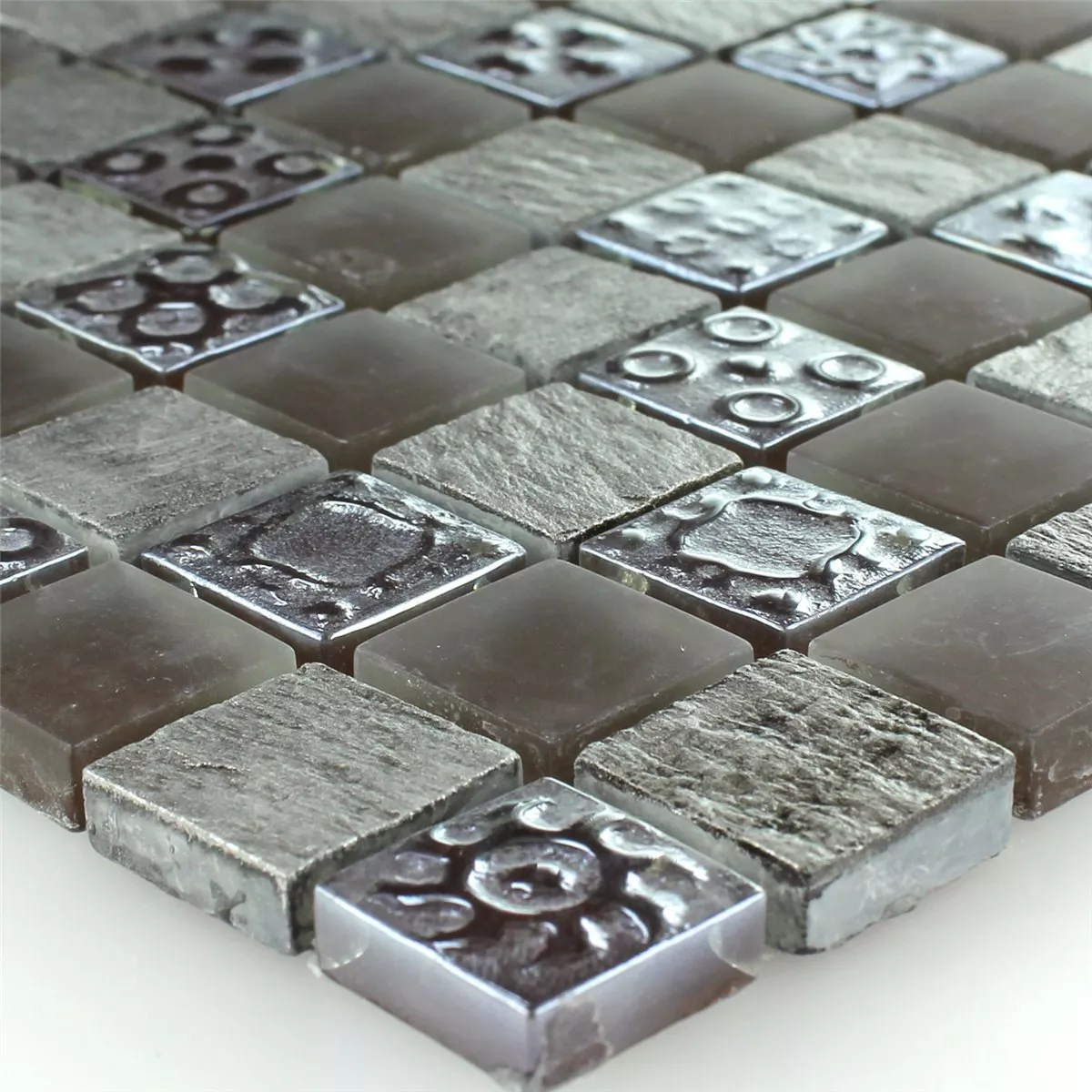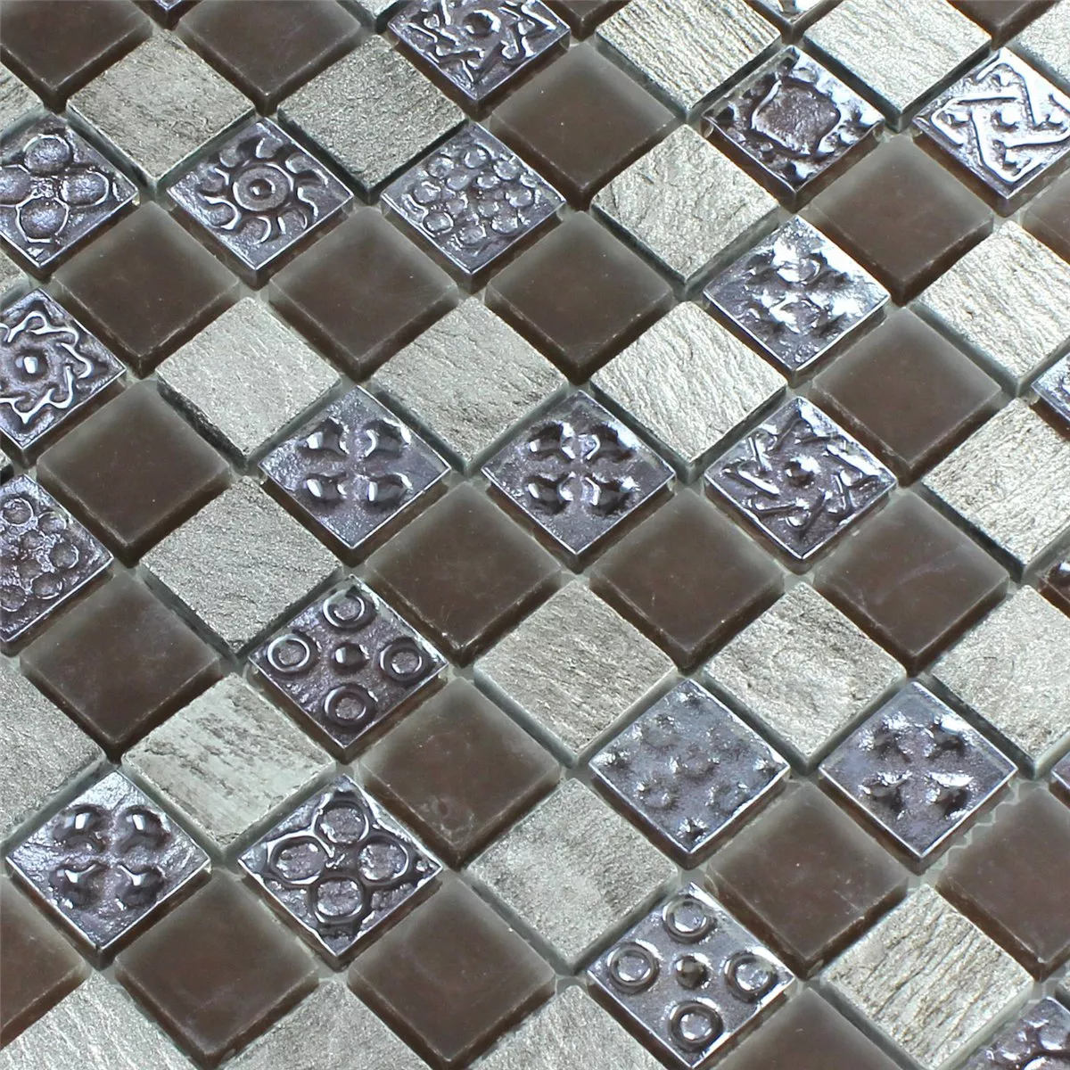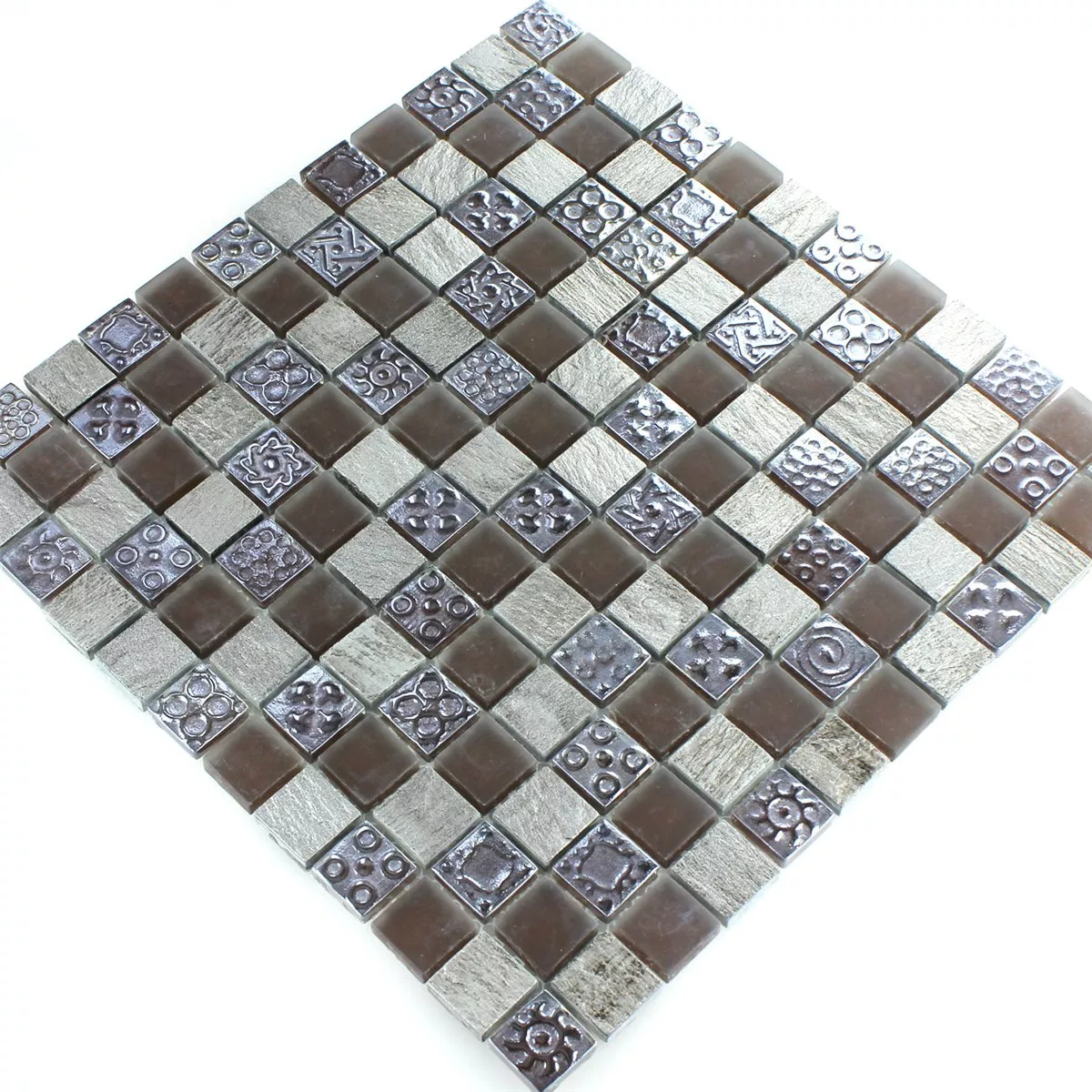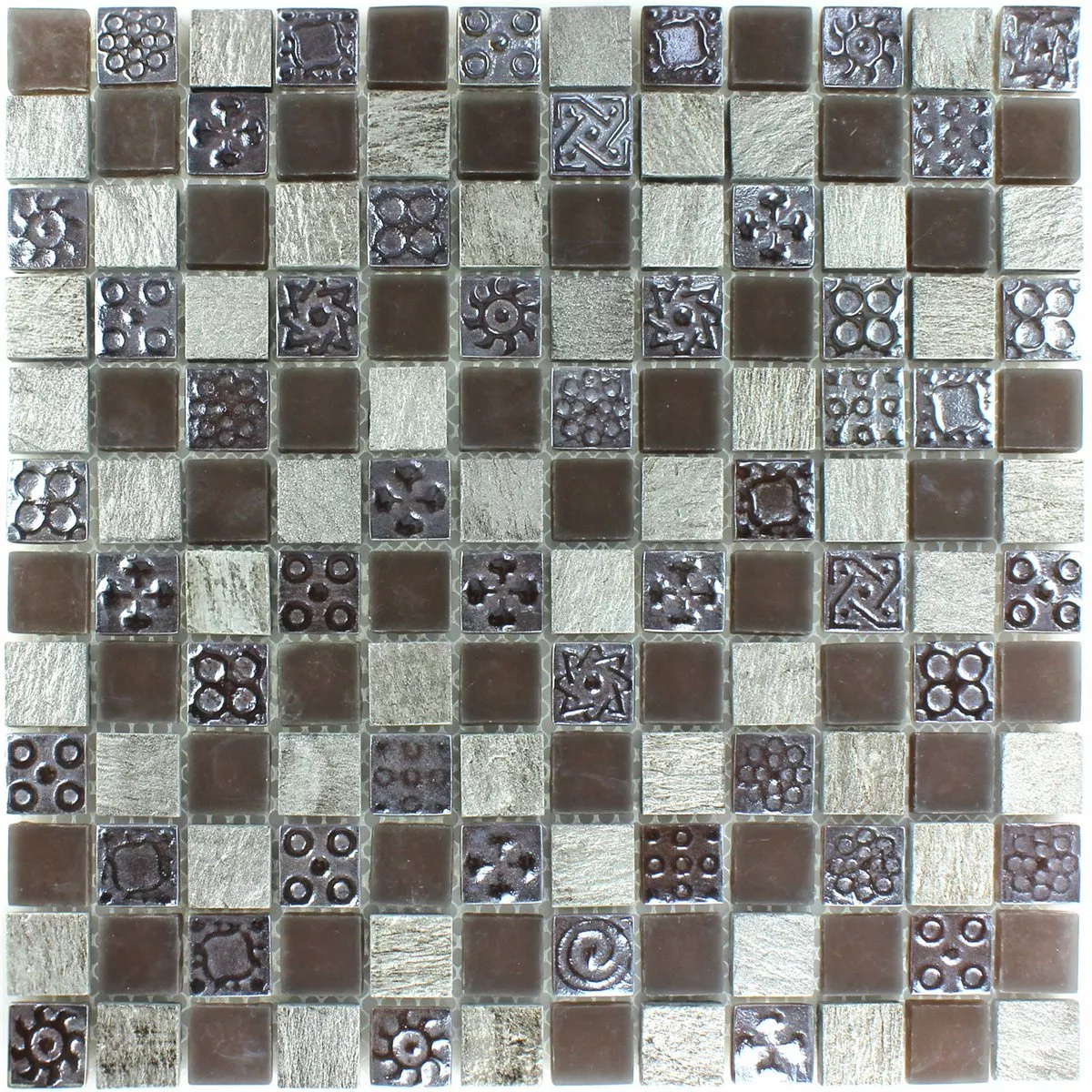 Muster von Mosaikfliesen Kalkstein Glas Grau Braun