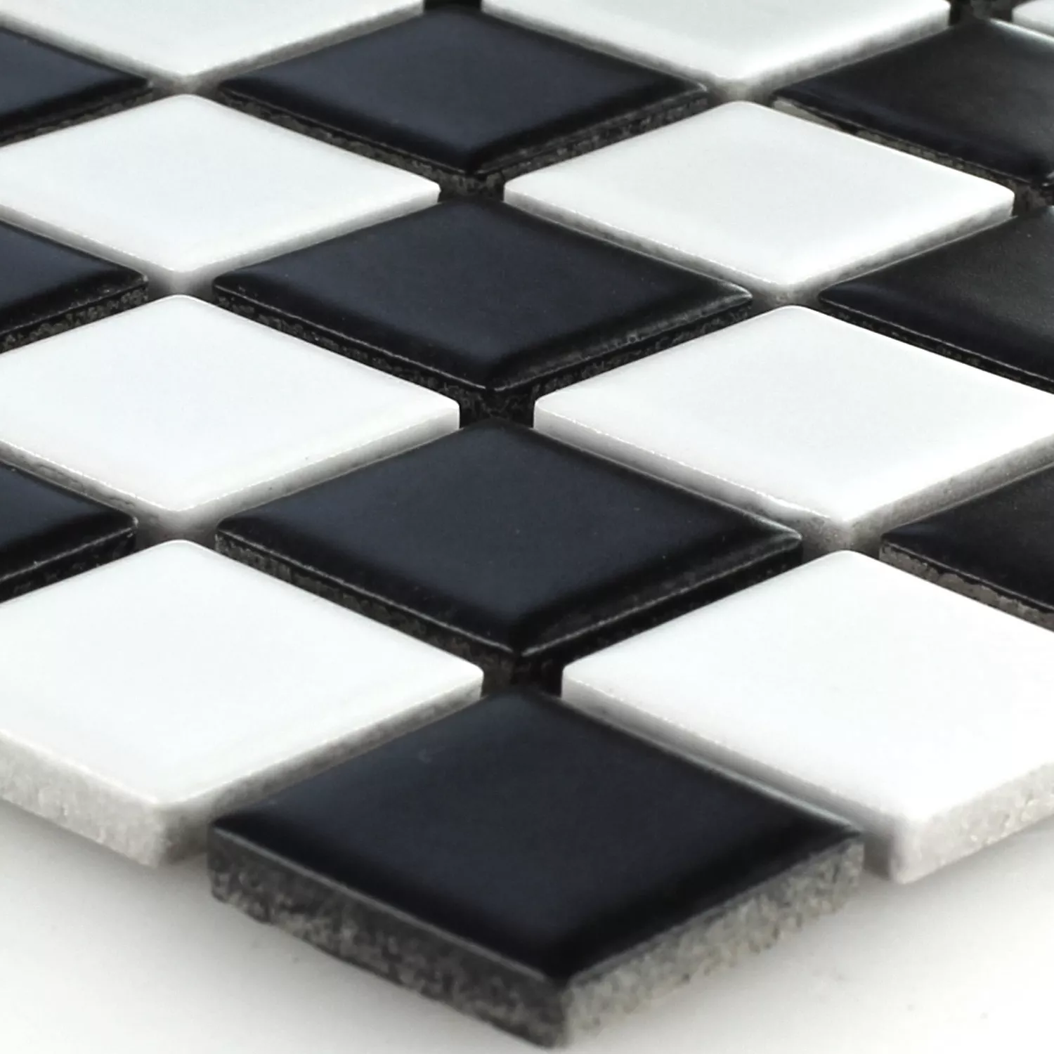 Muster von Mosaikfliesen Keramik Yona Schwarz Schachbrett Matt