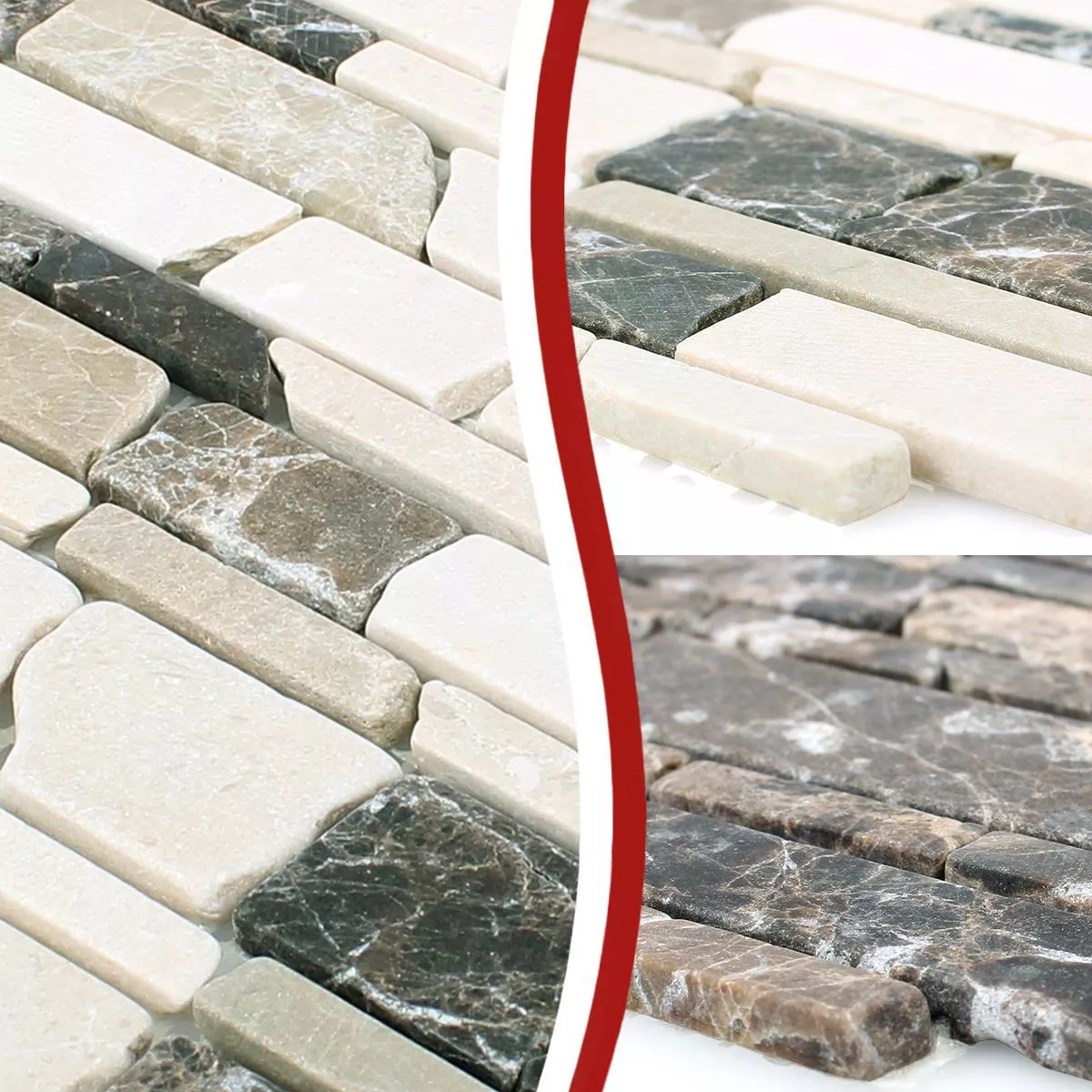 Muster von Mosaikfliesen Marmor Havel Brick Castanao Biancone