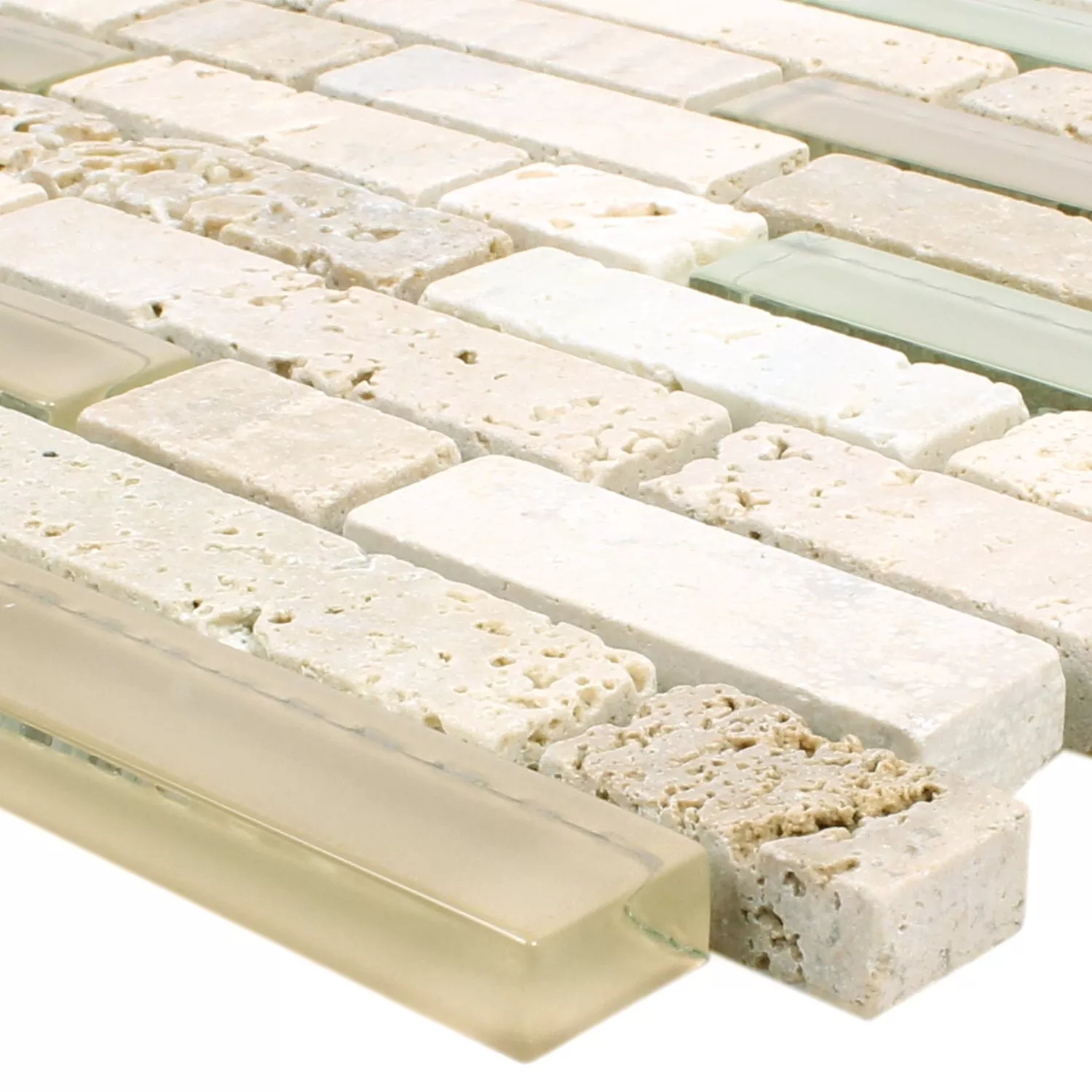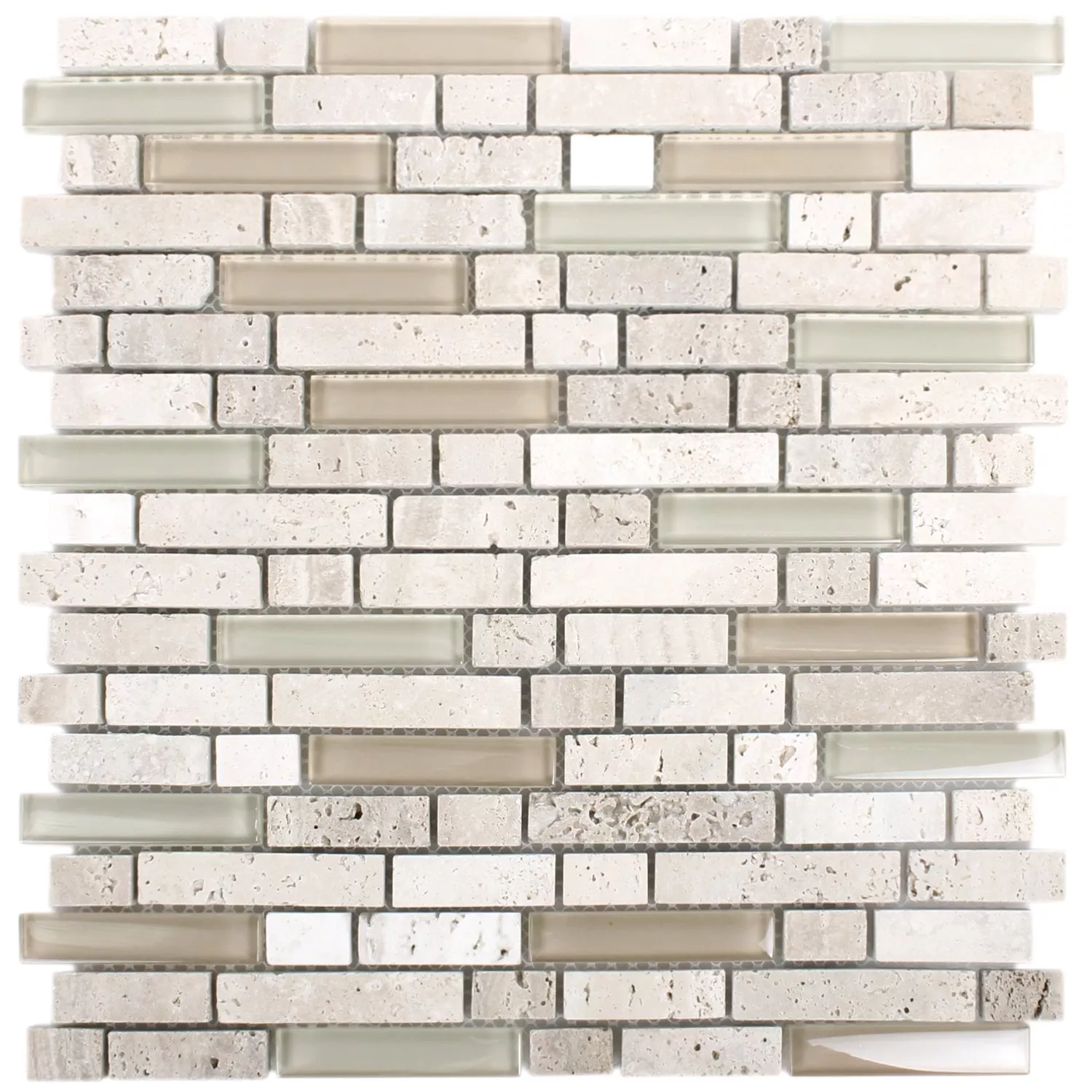 Muster von Mosaikfliesen Milos Glas Naturstein Mix Beige Verbund