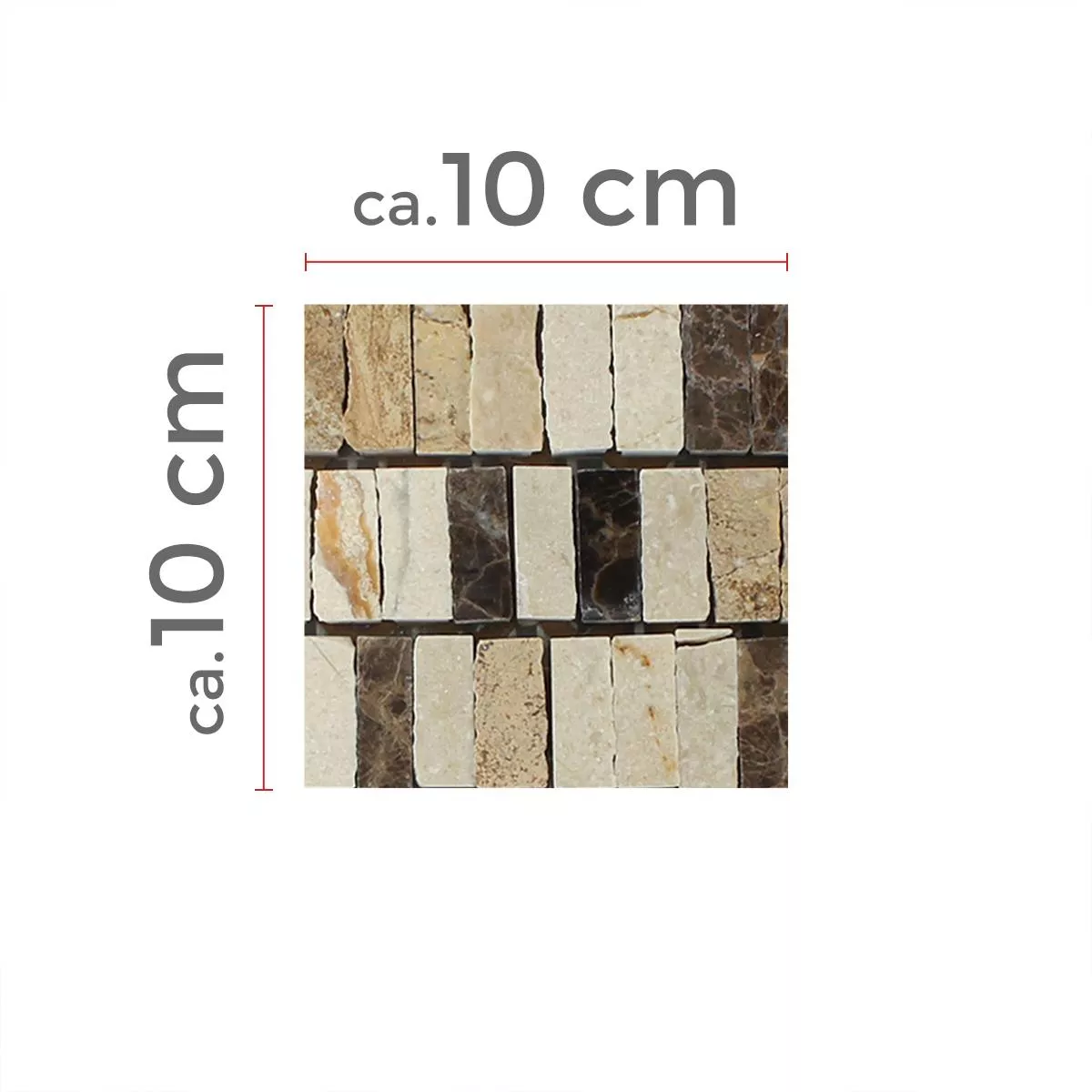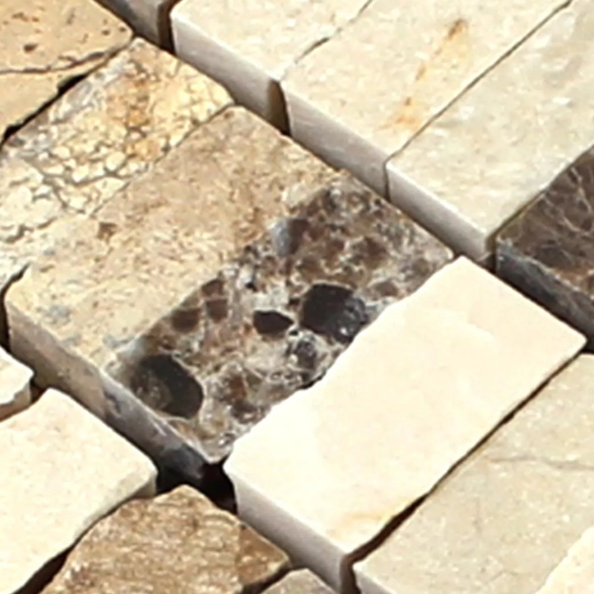 Muster von Mosaikfliesen Zoltan Beige Crema Emperador Stäbchen
