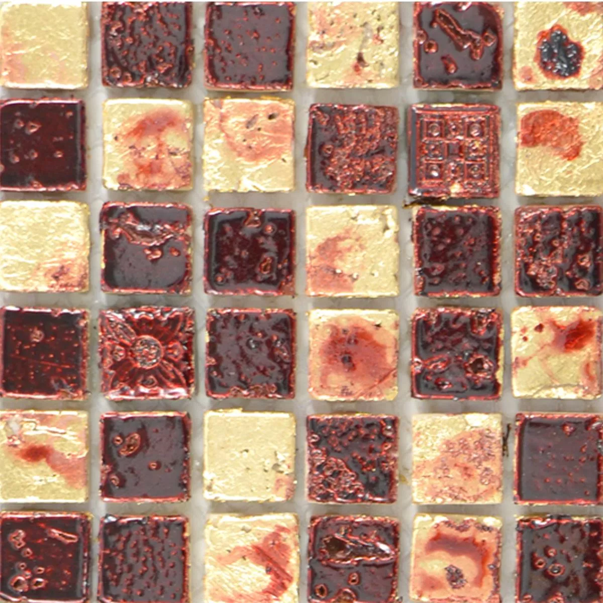 Muster von Naturstein Resin Mosaikfliesen Lucky Gold Rot