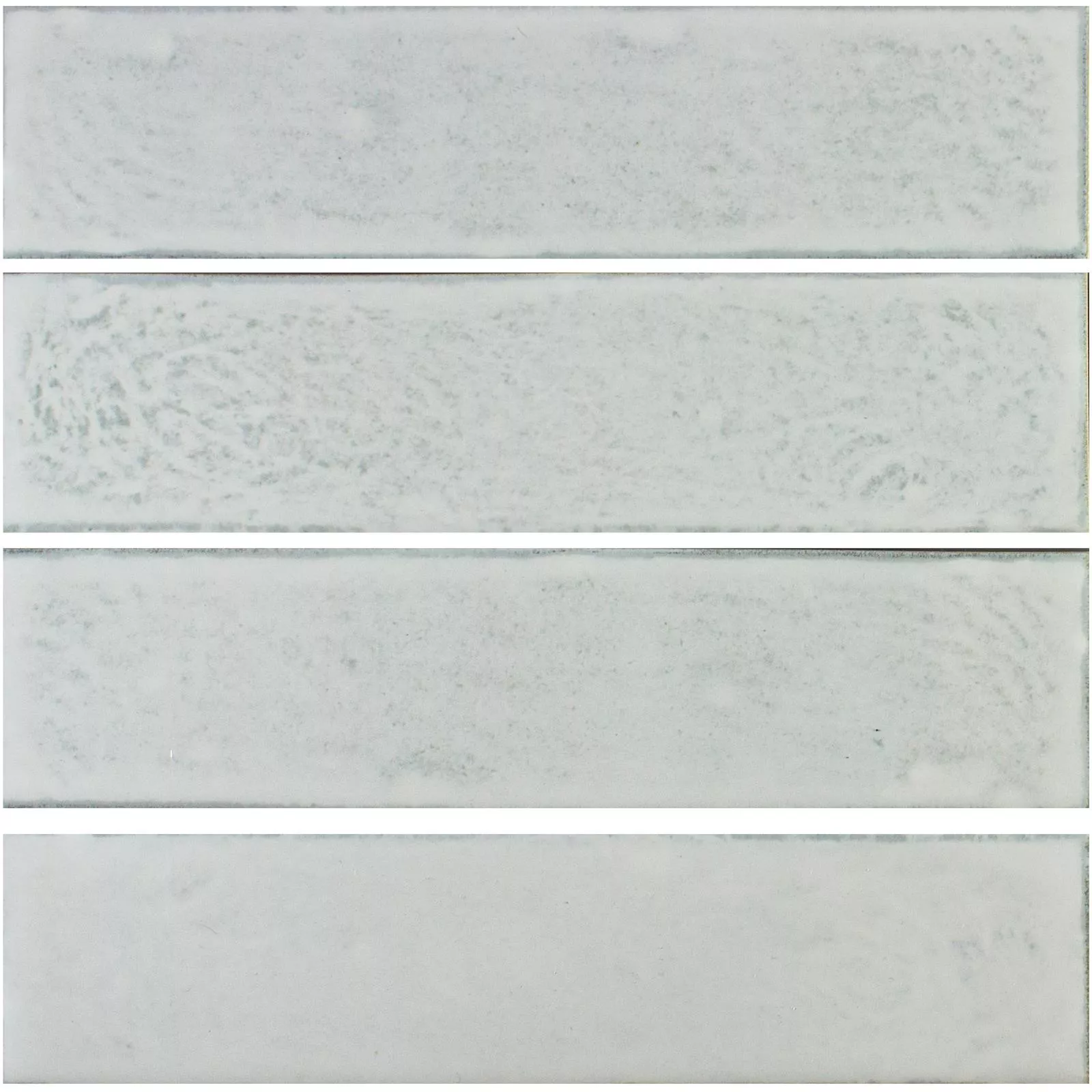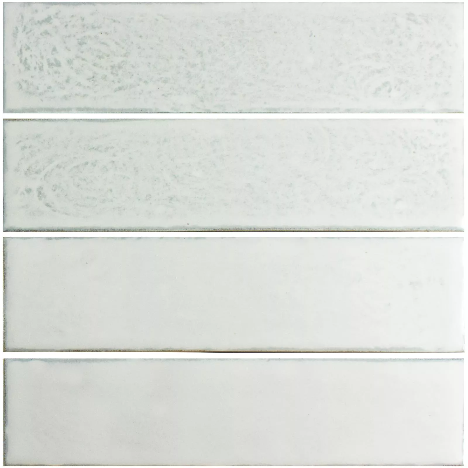 Muster Wandfliese Open Air Gewellt 6x24cm Weiß