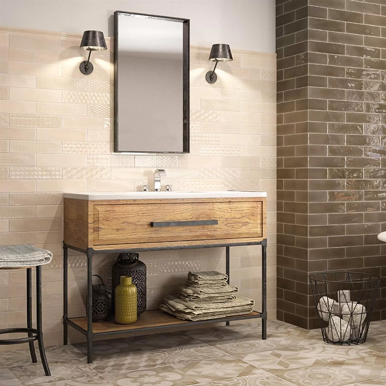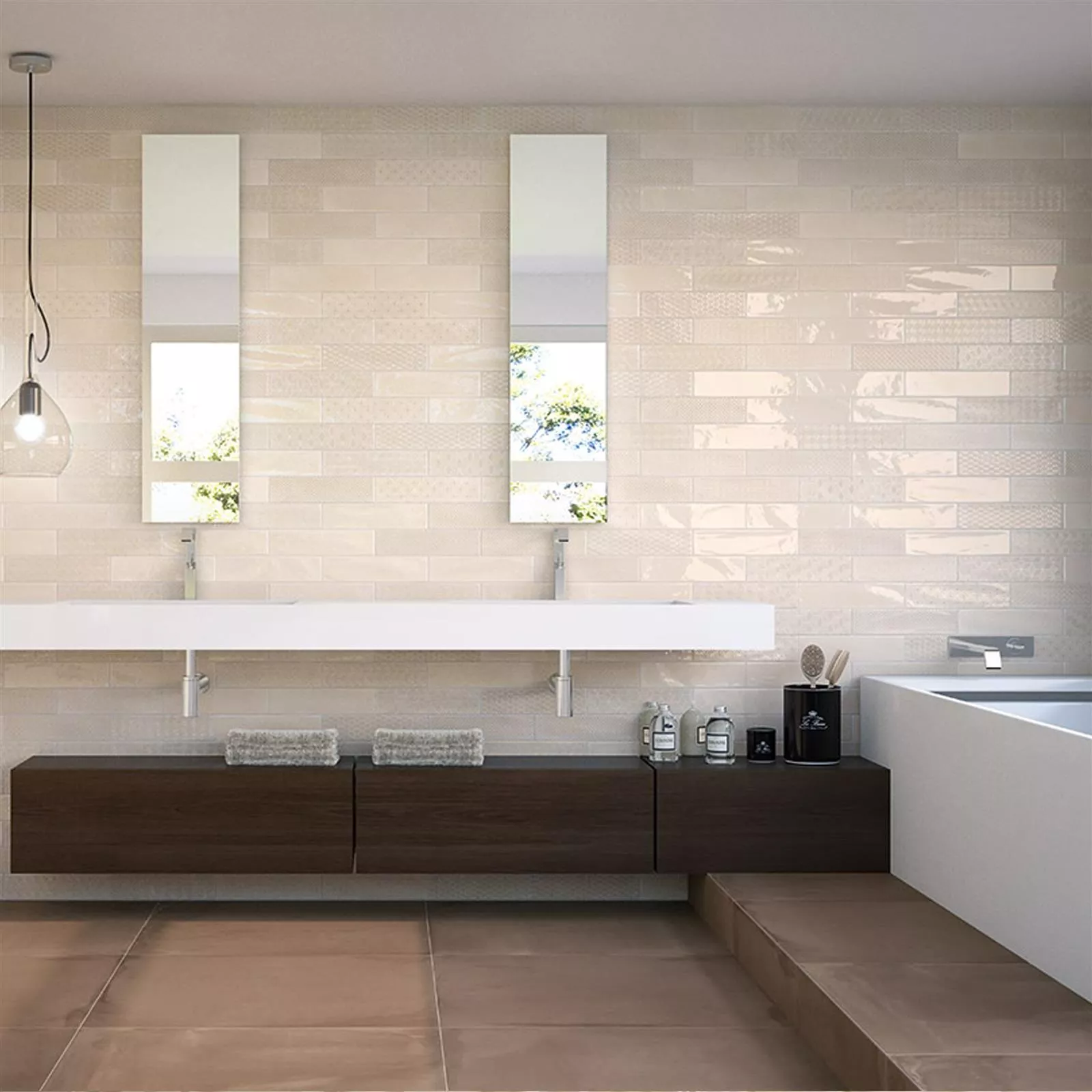 Muster Wandfliesen Conway Gewellt 7,5x30cm Beige