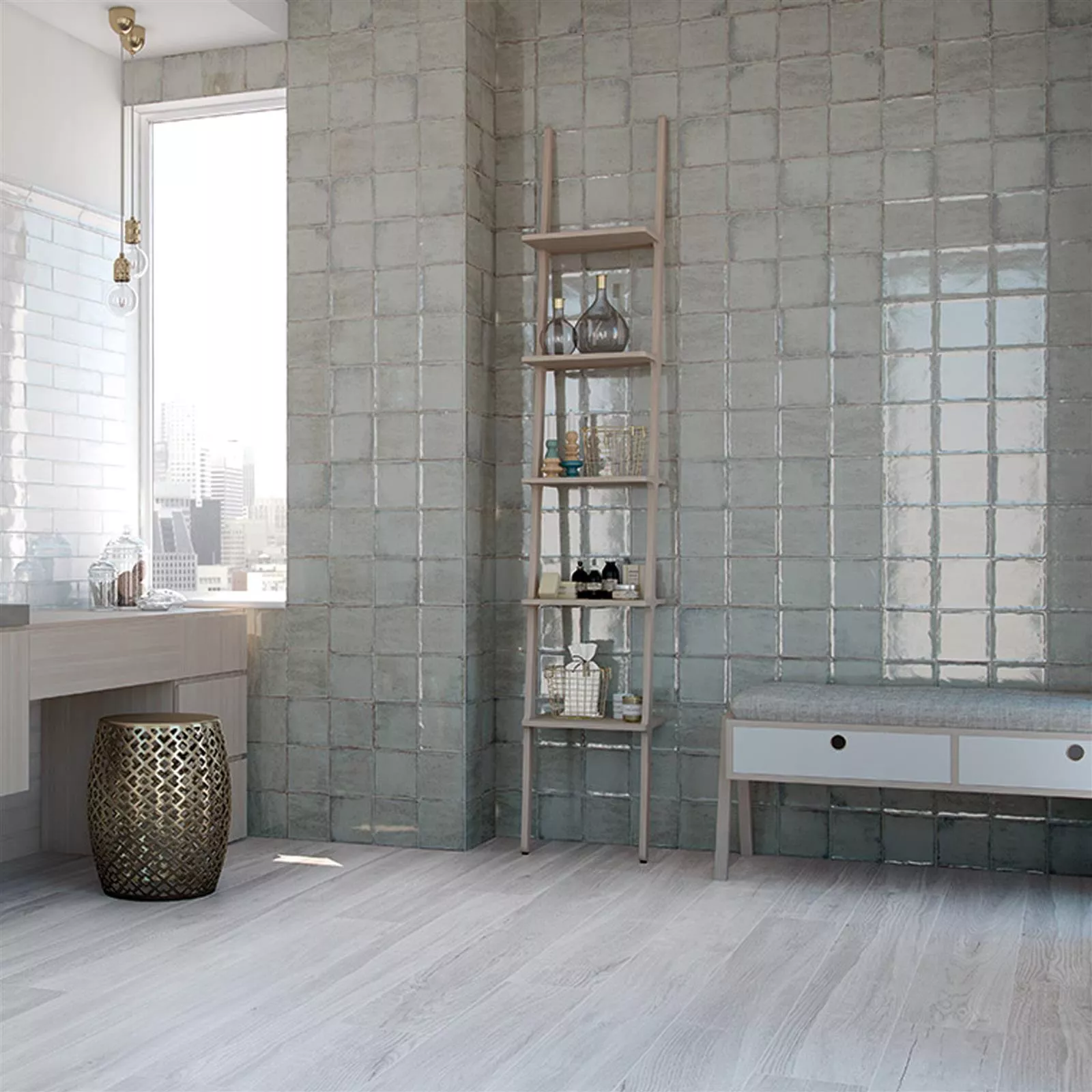 Muster Wandfliesen Maestro Gewellt Glänzend Grau 15x15cm