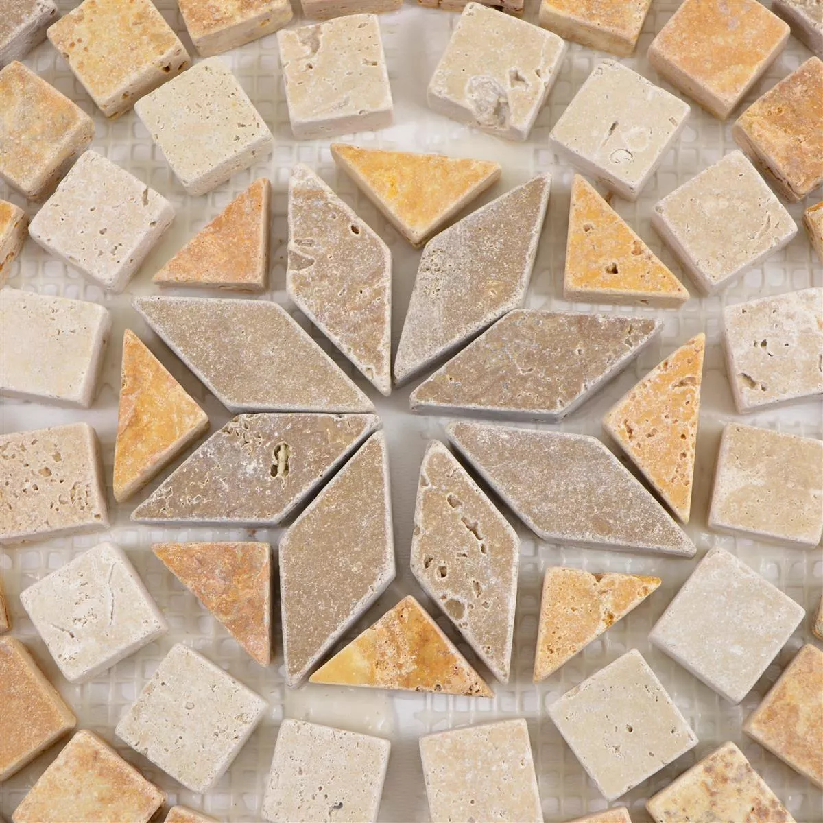 Jede Fliese und jedes Mosaik haben aufgrund individueller Materialeigenschaften und Anwendungsbedingungen unterschiedliche Anforderungen an das Zuschneiden, Verlegen und Verarbeiten. Fragen Sie einen örtlichen Experten für das korrekte und sichere Verlegen Ihrer Mosaike oder Fliesen. Wir haften nicht für unsachgemäßen Gebrauch und fehlerhafte Verarbeitung von Baumaterialien.