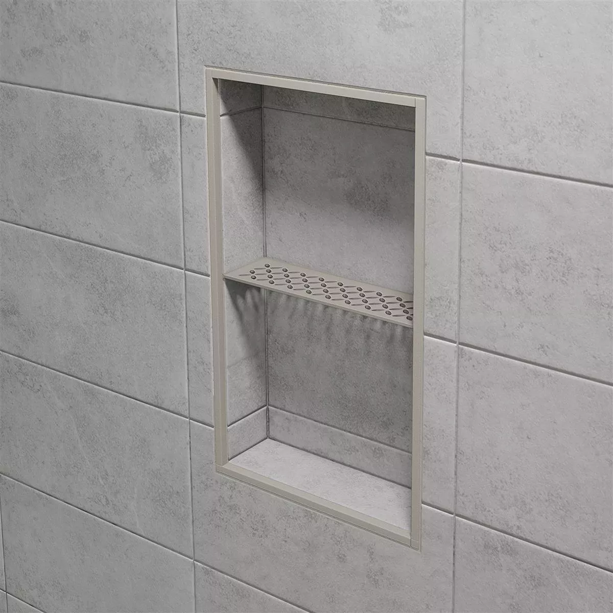 Schlüter-SHELF-N-S1 Grau Rechteckige Nischen-Wandablage Mit Schlüter-SHELF-N-S1 können Sie während der Fliesenverlegung die vorgefertigte Nische Schlüter-KERDI-BOARD mit einer passgenauen Ablage ausstatten. Damit nicht genug: Sie haben hier auch noch maximale Flexibilität in Sachen Material und Design. So ist die hochwertige Nischen-Wandablage entweder aus gebürstetem Edelstahl oder strukturbeschichtetem Aluminium gefertigt.