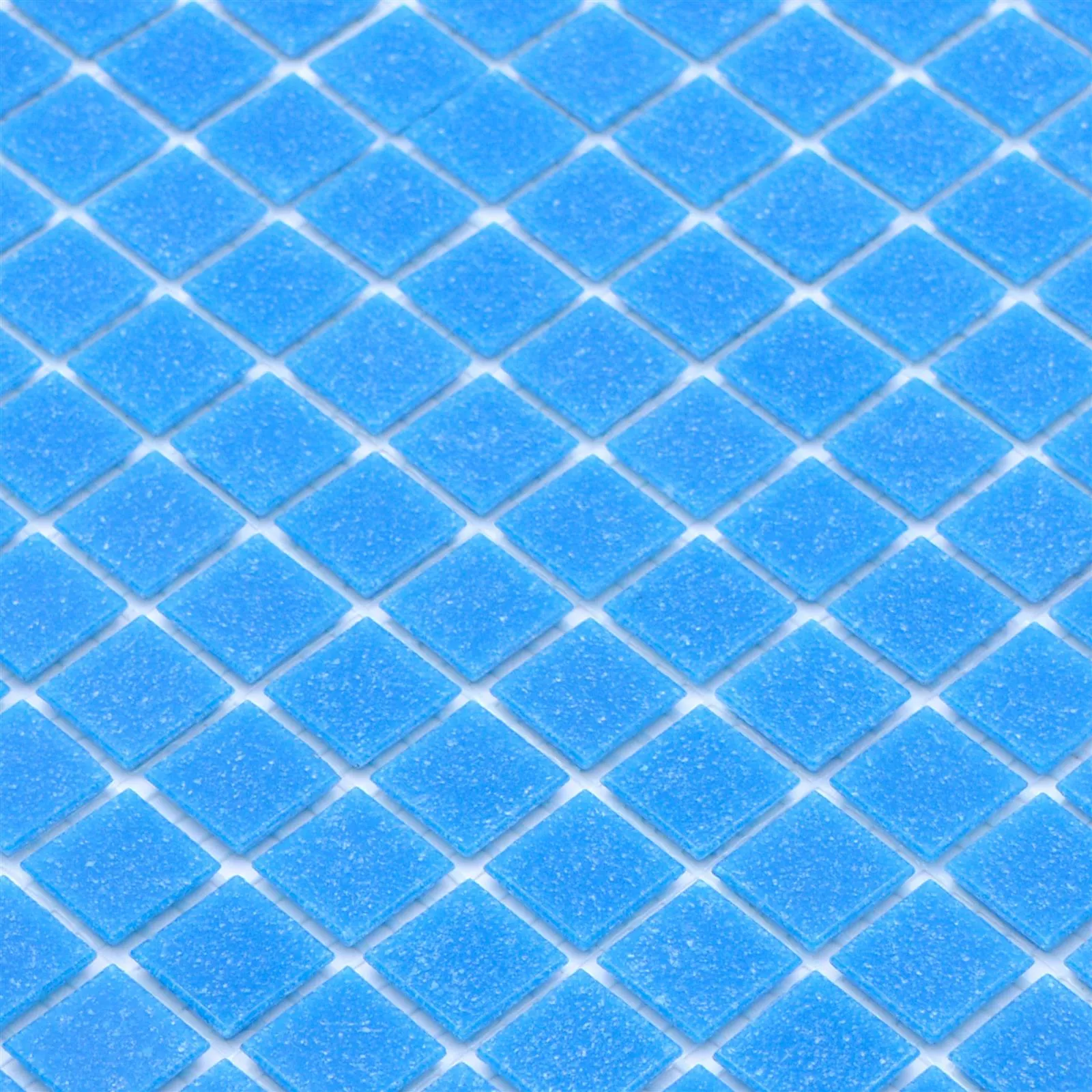 Unsere Fliesen für Ihr Schwimmbad: Der intensive Blau-Türkis mix wird den Pool in ein ansprechendes Nass verwandeln, denn das Wasser erhält eine wunderbare klare Farbe. Von weitem erscheint es als hätten Sie sich die Nord See nach Hause geholt. Es sind Mosaikfliesen, die auf einzelnen Matten papierverklebt sind, damit die Verlegung schnell von der Hand geht. Dazu bedarf es nicht nur eine Profihand. Die quadratischen Matten lassen sich einfach in den Pool verlegen. Mit einem Messer kann das Gewebe geschnitten werden und der benötigten Größe angepasst werden.