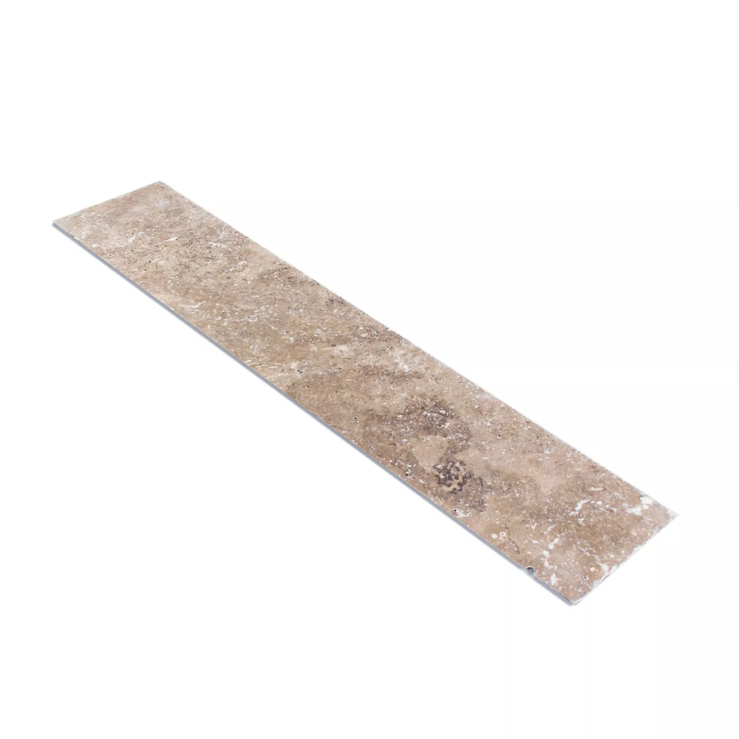 Die Natursteinfliesen Travertin Sockel Patara Noce bestehen aus terrestrischer Sedimentgestein, der durch einen Prozess der schnellen Ausfällung von Kalziumkarbonat an der Mündung von heißen Quellen oder in Kalksteinhöhlen gebildet wird. Travertin Patara Noce hat oft ein faseriges oder konzentriertes Aussehen und besteht in weißer, brauner, cremefarbener und rostiger Sorte. Diese Natursteinfliesen bringen einzigartige Wärme in Küchen, Wohnräume und Bäder. Travertin wird häufig in modernen Häusern als ein natürliches und stabiles Baumaterial verwendet.